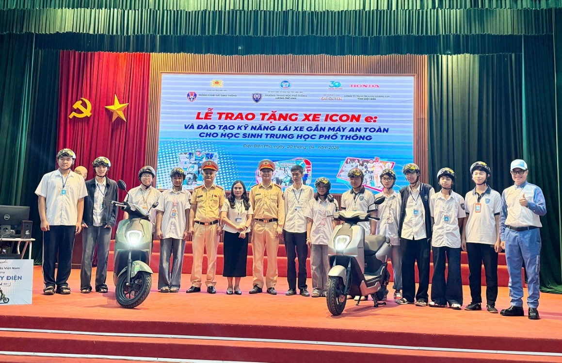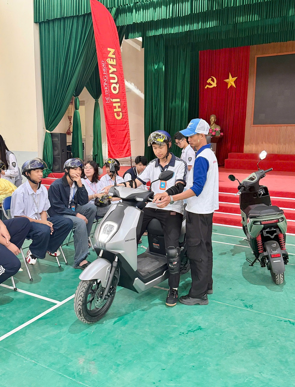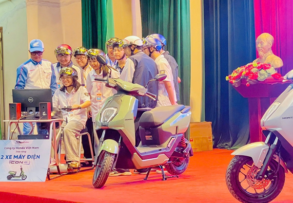 Đặc biệt, trong khuôn khổ chương trình, đại diện HEAD Chí Quyên đã trao tặng 02 xe máy điện Icon - e cho nhà trường nhằm hỗ trợ công tác giáo dục, tuyên truyền và tổ chức các hoạt động trải nghiệm về an toàn giao thông trong thời gian tới. Đây không chỉ là món quà có giá trị thiết thực mà còn thể hiện sự đồng hành, trách nhiệm xã hội của doanh nghiệp đối với sự nghiệp giáo dục địa phương.