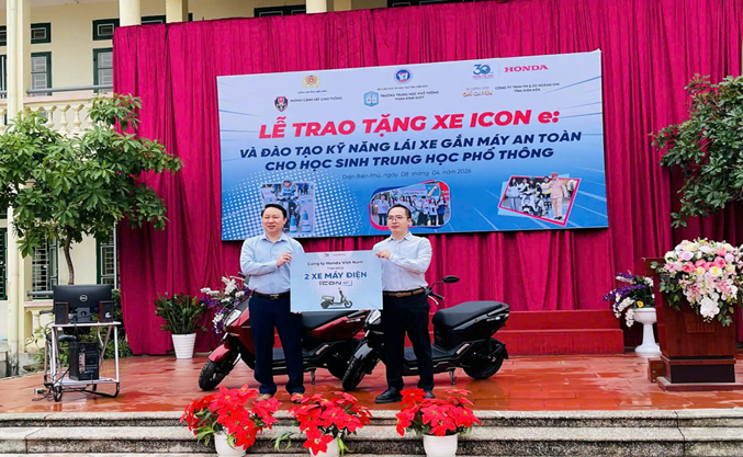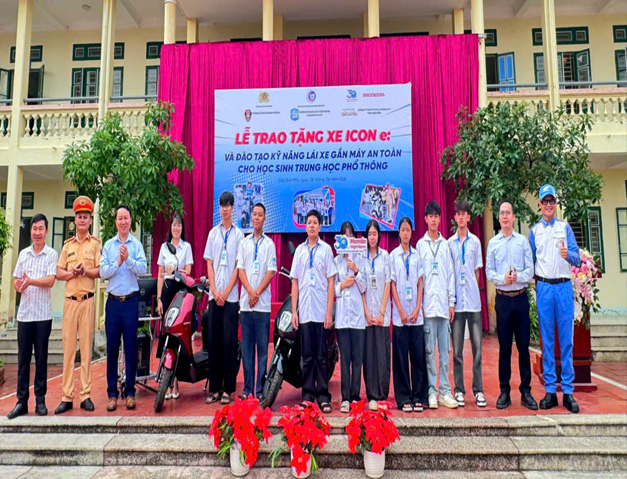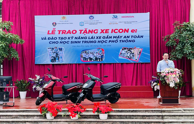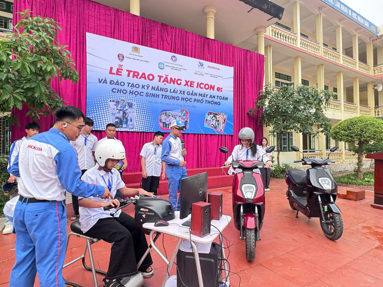 Bên cạnh nội dung tuyên truyền, các kỹ thuật viên của Honda Việt Nam cùng nhân viên Công ty TNHH Thương Mại và Dịch Vụ Hoàng Kim và Hệ thống HEAD Chí Quyên đã trực tiếp giới thiệu những tính năng nổi bật của xe ICON e và hướng dẫn học sinh các thao tác cơ bản khi vận hành cùng những lưu ý quan trọng để sử dụng xe máy điện một cách an toàn.