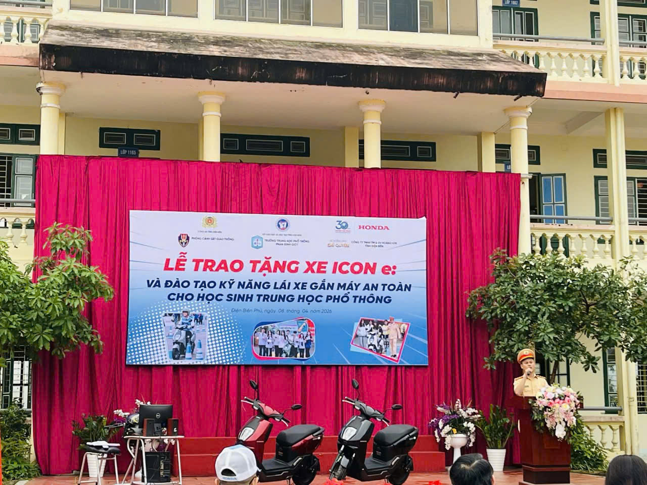 Tại buổi Lễ, đại diện Hệ thống HEAD Chí Quyên thuộc Công ty TNHH Thương Mại và Dịch Vụ Hoàng Kim đã trao tặng 02 xe máy điện ICON e do Honda Việt Nam sản xuất cho Trường THPT Phan Đình Giót. Những xe gắn máy được trao tặng đã mang vô cùng thiết thực, góp phần hỗ trợ nhà trường trong các hoạt động tuyên truyền, trải nghiệm thực tế và hướng dẫn kỹ năng lái xe an toàn cho học sinh.