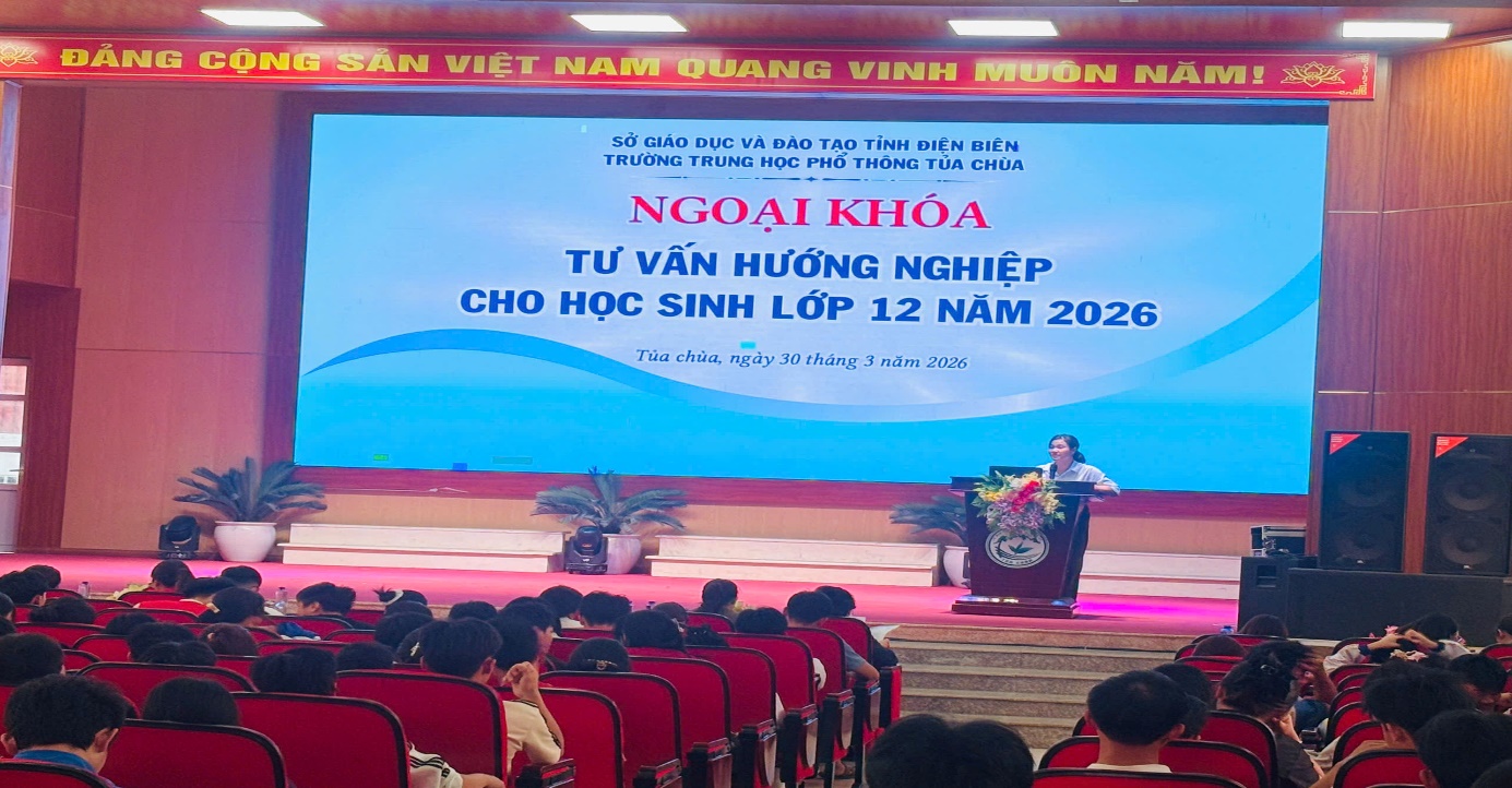 Dienbien.edu.vn - Trong không khí sôi nổi, thiết thực hướng tới kỳ thi tốt nghiệp THPT năm 2026, chiều ngày 30/3/2026, trường THPT Tủa Chùa đã tổ chức chương trình ngoại khóa “Tư vấn hướng nghiệp” dành cho học sinh khối 12. Đây là hoạt động ý nghĩa nhằm giúp học sinh định hướng tương lai, chủ động lựa chọn con đường học tập và nghề nghiệp phù hợp trong giai đoạn quan trọng trước ngưỡng cửa trưởng thành.