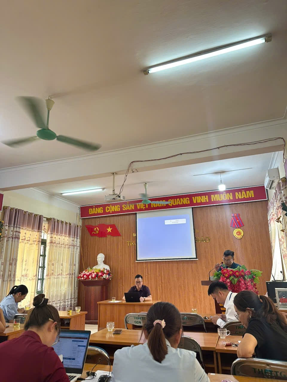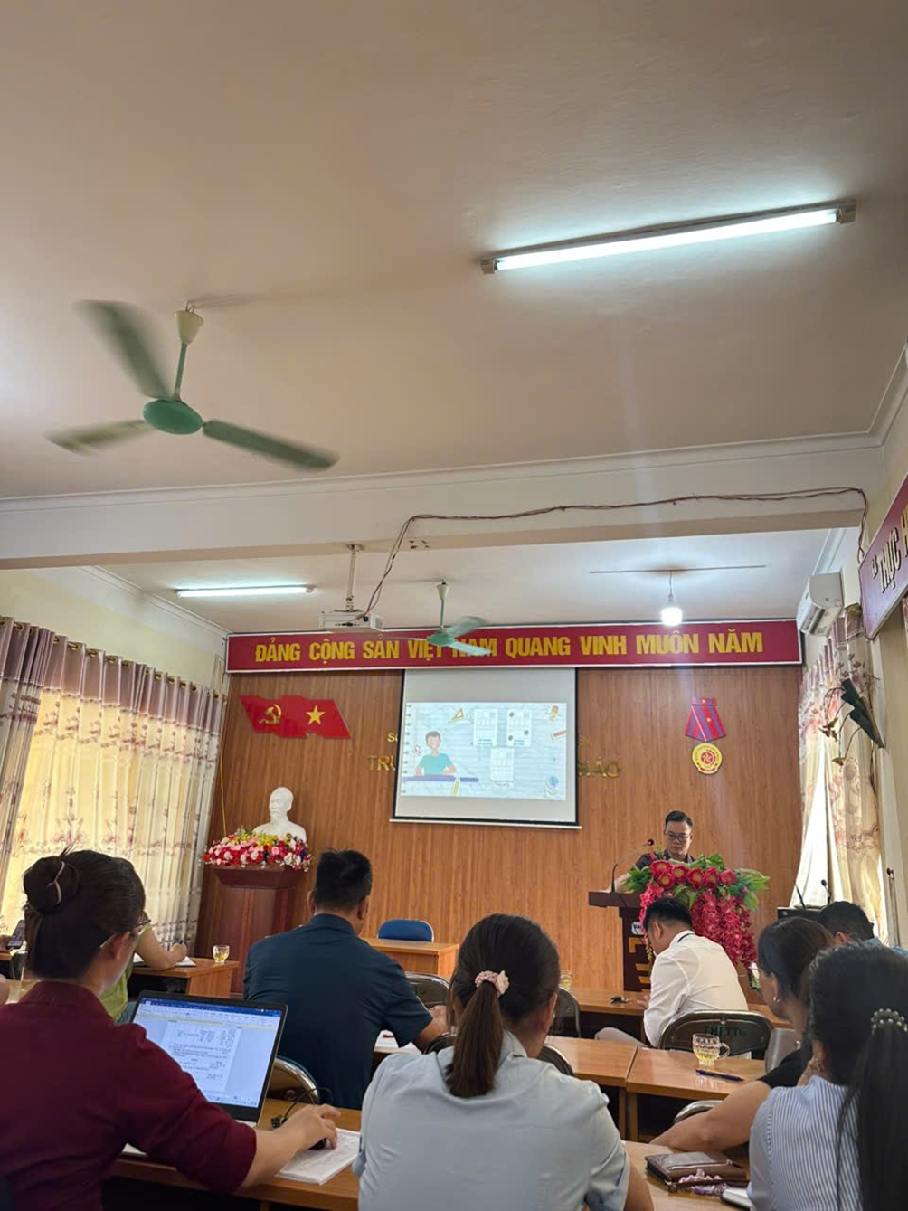 Bên cạnh đó, Thầy giáo Nguyễn Văn Ninh - Tổ phó tổ NN-TD triển khai nội dung Tập huấn về công tác tuyển sinh Đại học, Cao đẳng Ngành Giáo dục Mầm non năm 2026, bao gồm phương thức tuyển sinh, tổ hợp xét tuyển, lộ trình đăng ký nguyện vọng và những lưu ý quan trọng đối với học sinh, tập huấn về phần mềm quản lý thi đối với GVCN lớp 12.