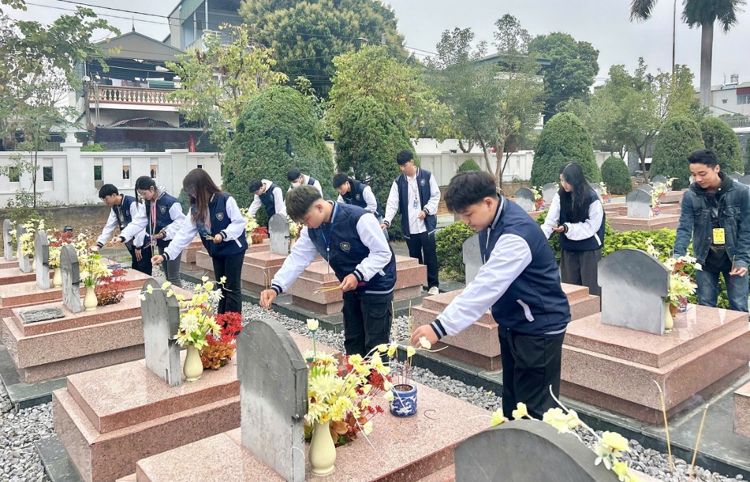 Hành trình về nguồn đầu Xuân: Trường THCS và THPT Lương Thế Vinh, Trường THPT Phan Đình Giót viếng Nghĩa trang Liệt sĩ quốc gia Him Lam nhân dịp Tết Nguyên đán