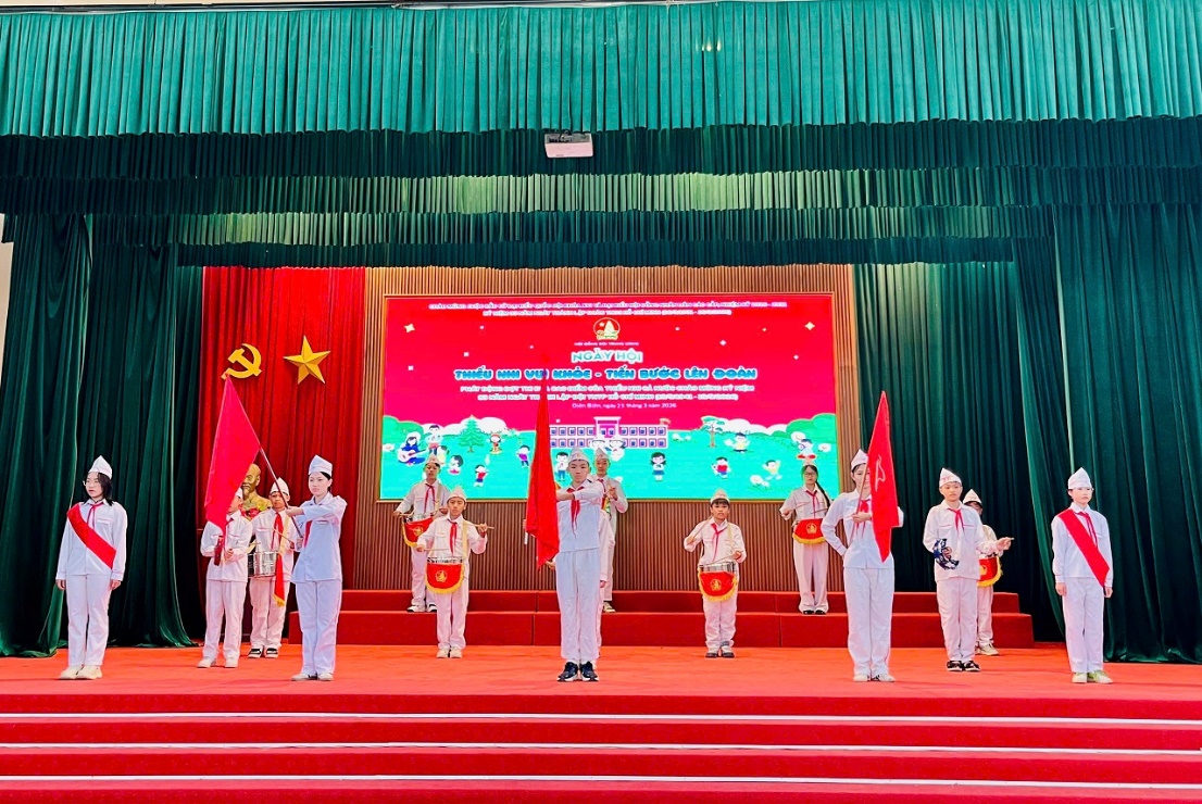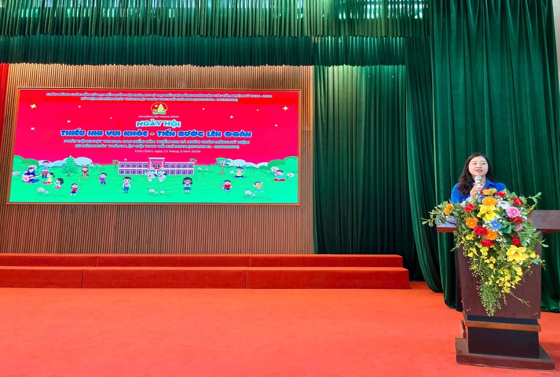 Phát biểu khai mạc, đồng chí Vũ Hồng Tươi - Bí thư Đoàn trường đã nhấn mạnh ý nghĩa của hoạt động trong việc giáo dục truyền thống, bồi dưỡng lý tưởng cách mạng cho thế hệ trẻ. Trong bài phát biểu, đồng chí khẳng định: hoạt động “Thiếu nhi vui khỏe - Tiến bước lên Đoàn” không chỉ là sân chơi rèn luyện thể chất mà còn là dịp để các em học sinh hiểu rõ hơn về lịch sử, vai trò của Đoàn TNCS Hồ Chí Minh từ đó nâng cao ý thức phấn đấu, rèn luyện đạo đức, tích cực học tập để sớm trở thành đoàn viên. Đồng chí cũng gửi gắm kỳ vọng mỗi đội viên sẽ không ngừng nỗ lực, phát huy tinh thần xung kích, sáng tạo của tuổi trẻ, góp phần xây dựng nhà trường ngày càng phát triển.