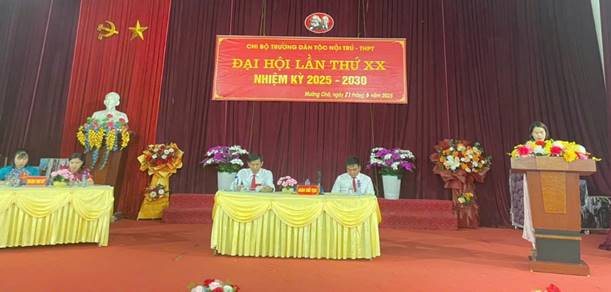 Tại Đại hội, các đại biểu đã nghe đồng chí Nguyễn Quang Huy thay mặt đoàn chủ tịch lên thông qua báo cáo chính trị của chi bộ khoá XIX trình Đại hội. Với những đặc điểm thuận lợi, khó khăn và các kết quả đạt được trong 5 năm 2020-2025 từ chuyên môn đến công tác xây dựng Đảng, nhà trường, lãnh đạo hoạt động của các tổ chức, đoàn thể, thực hiện Chỉ thị 05-CT/TW của Bộ Chính trị,...Chi bộ Trường PTDTNT THPT huyện Mường Chà đã nỗ lực cố gắng, khắc phục khó khăn lãnh đạo nhà trường triển khai thực hiện cơ bản hoàn thành các chỉ tiêu Nghị quyết của chi bộ nhiệm kì 2020-2025.