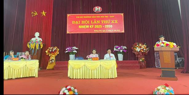 Phát biểu tại Đại hội, đồng chí Nguyễn Quang Hợp - Ủy viên Ban Thường vụ Huyện ủy - Phó Chủ tịch UBND huyện Mường Chà, ghi nhận và biểu dương những thành tích mà Chi bộ nhà trường đã đạt được trong nhiệm kỳ qua. Đồng thời đồng chí cũng định hướng một số nhiệm vụ trọng tâm nhằm nâng cao chất lượng giáo dục và phát huy hiệu quả vai trò của nhà trường trong giai đoạn mới.