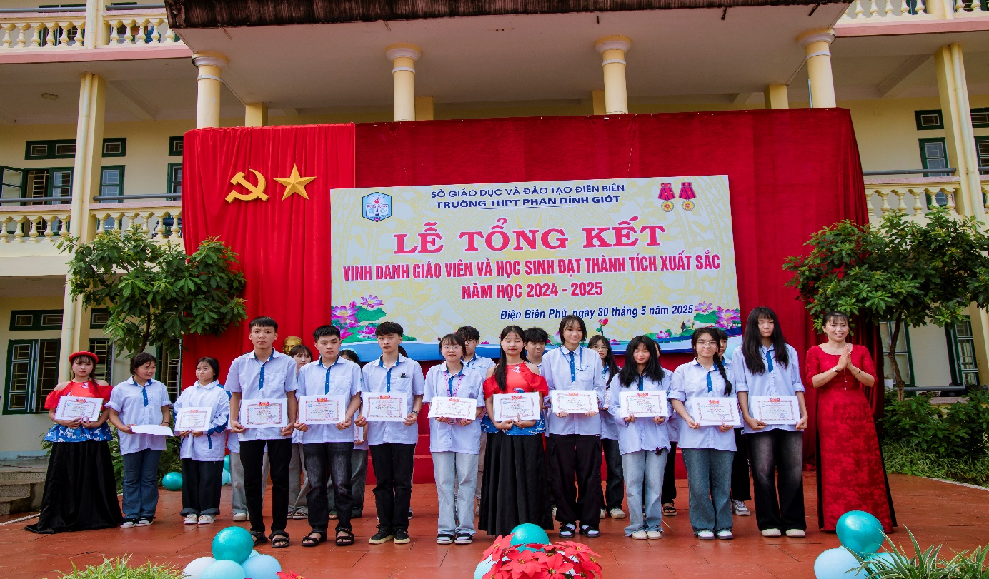 Một năm học nữa đã khép lại, ghi thêm một dấu ấn vàng son vào hành trình phát triển của Trường THPT Phan Đình Giót. Thành quả hôm nay là kết tinh từ sự nỗ lực không ngừng nghỉ của tập thể thầy và trò nhà trường, được vun đắp bằng niềm tin vững chắc vào thế hệ trẻ – những mầm xanh đang lớn lên dưới mái trường thân yêu. Trong không khí trang trọng của buổi lễ tổng kết năm học, những lời ca, tiếng hát vang lên như lời tri ân sâu sắc gửi tới các thầy cô – những người đã thầm lặng cống hiến vì sự nghiệp trồng người. Đồng thời, đó cũng là lời hứa đầy nhiệt huyết của lớp lớp học sinh hôm nay: sẽ tiếp bước cha anh, ra sức học tập, rèn luyện, chung tay xây dựng quê hương, đất nước ngày càng giàu mạnh, vươn tầm trong kỷ nguyên hội nhập và phát triển.