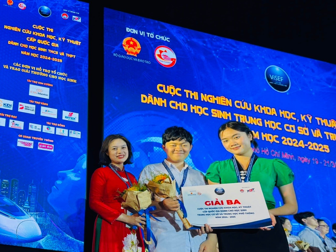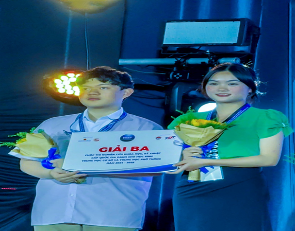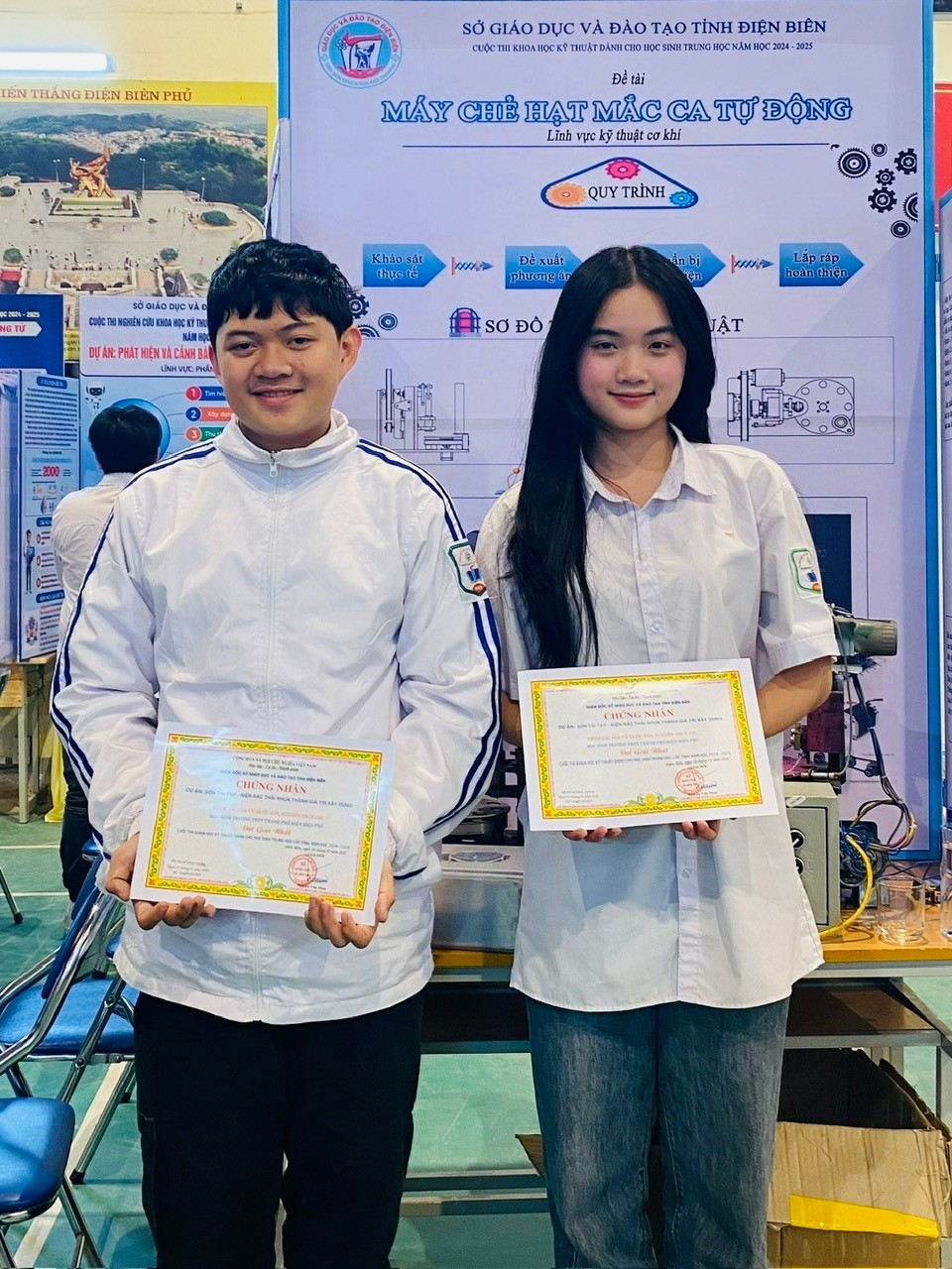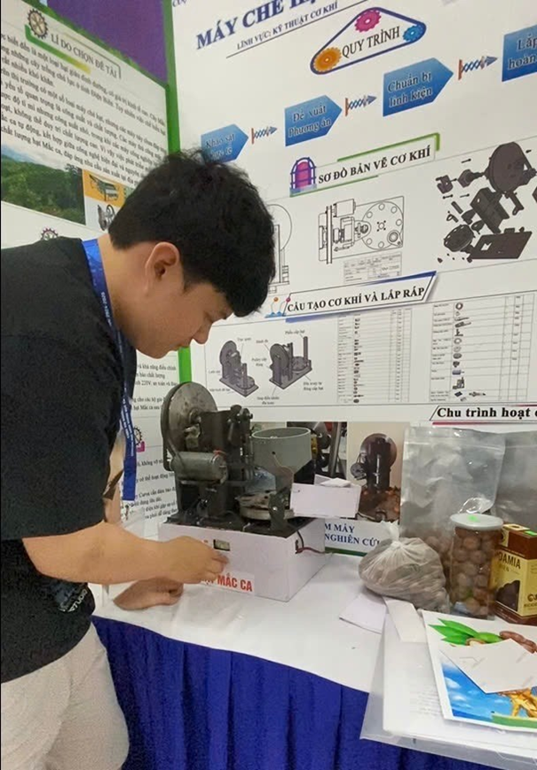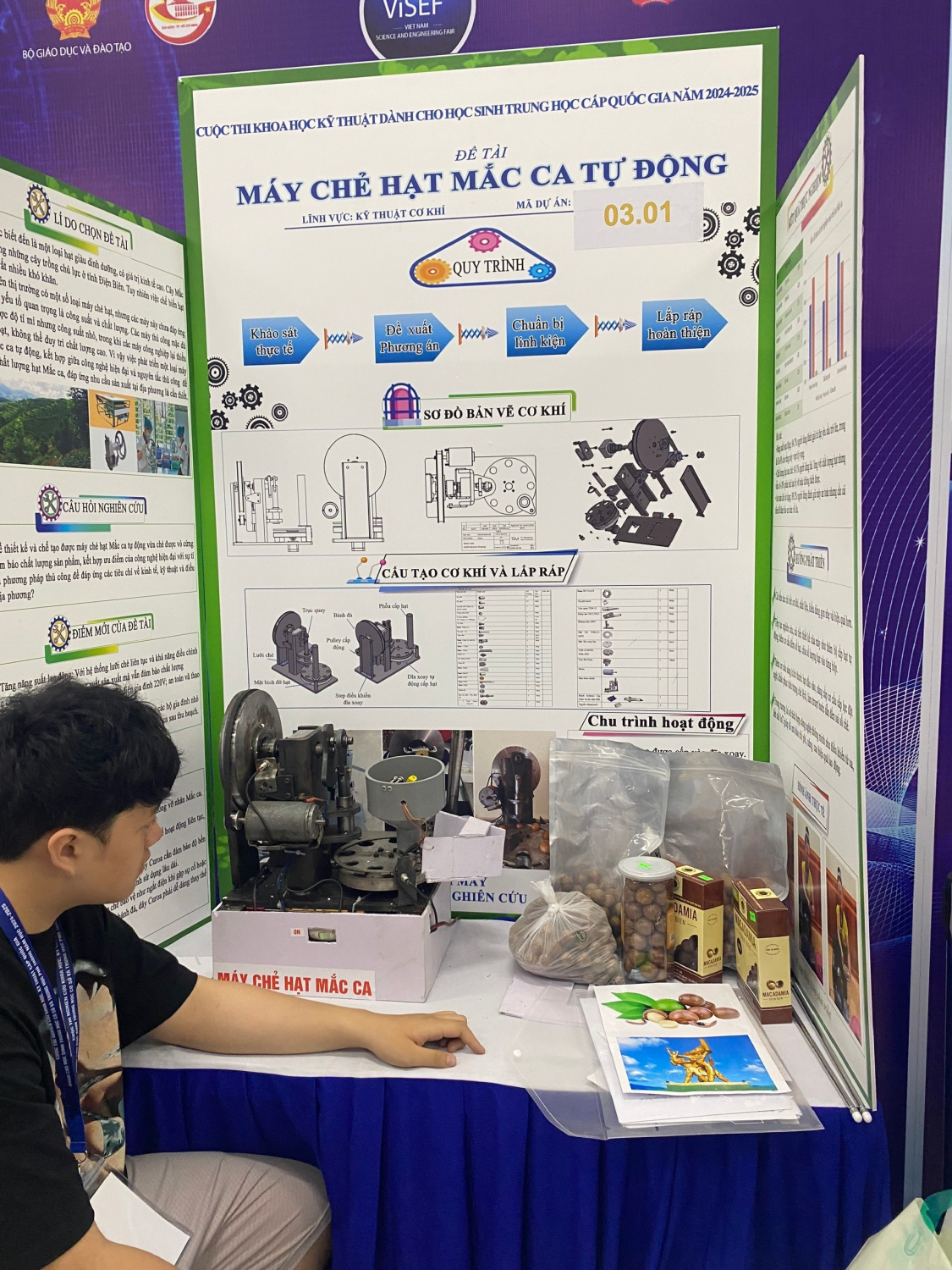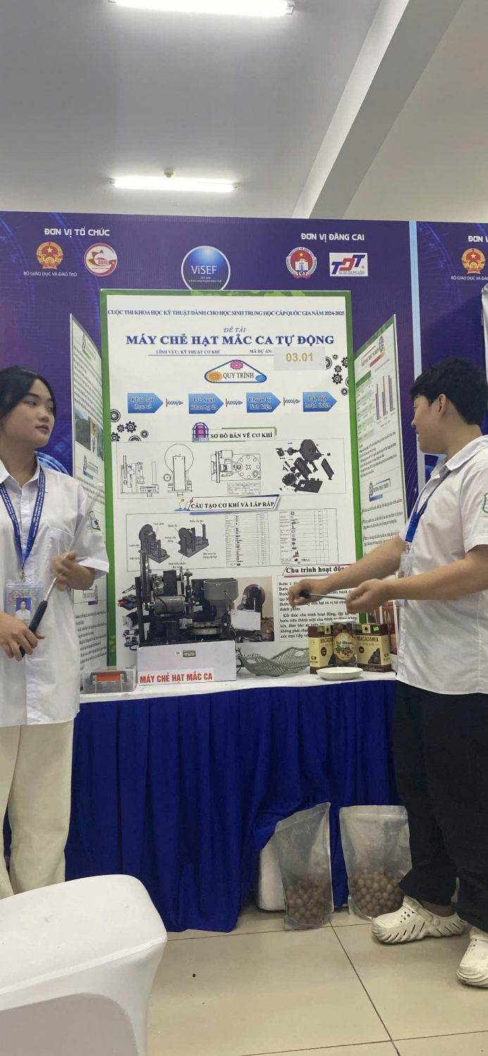 Với sản phẩm mang tính ưu việt này, dự án “Máy chẻ hạt mắc ca tự động” của Cù Quốc Sơn và Nguyễn Quỳnh Chi thực hiện dưới sự hướng dẫn của cô giáo Nguyễn Thùy Dương đã mang vinh dự về cho nhà trường với giải Nhất cấp tỉnh và giải Ba cấp Quốc gia trong Cuộc thi Nghiên cứu khoa học - kỹ thuật dành cho học sinh Trung học cơ sở và Trung học phổ thông, năm học 2024 – 2025.