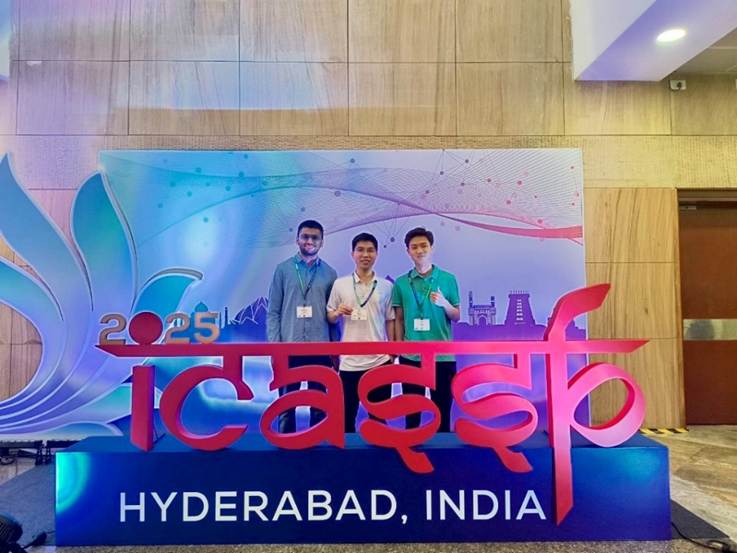 Tuấn Đạt (đứng đầu tiên từ phải sang) tại Hội nghị quốc tế về xử lý âm thanh, tiếng nói và tín hiệu (ICASSP 2025)