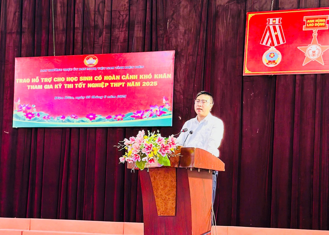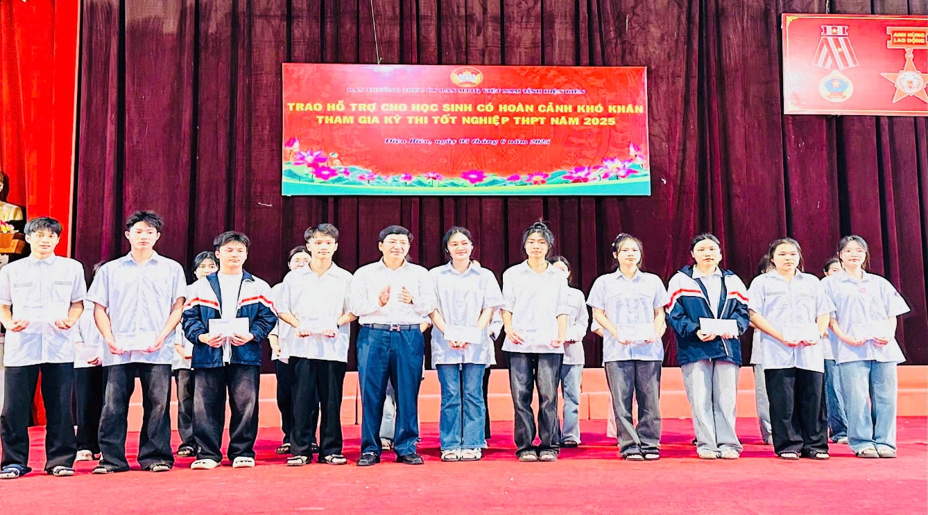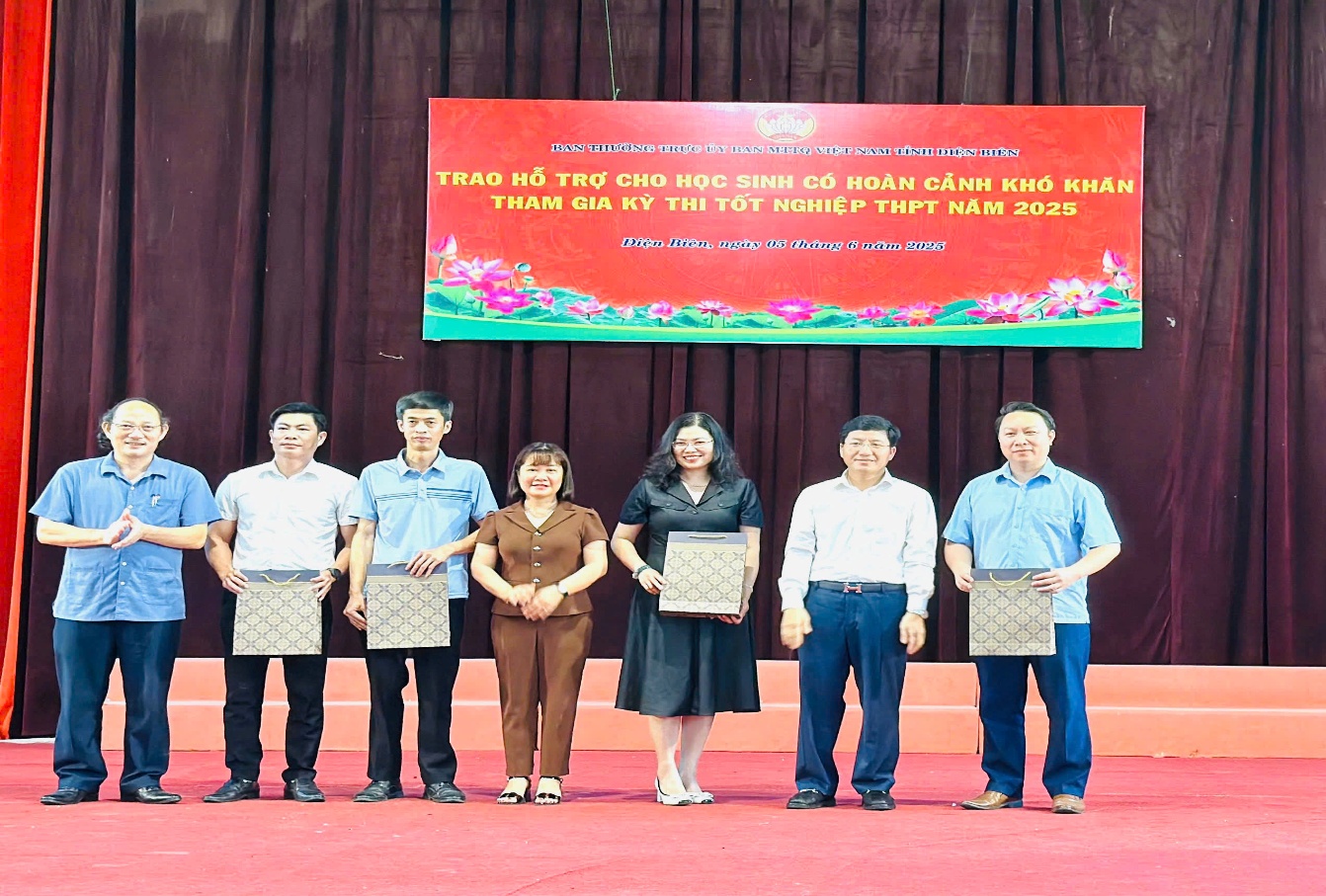 Chương trình hỗ trợ học sinh có hoàn cảnh khó khăn tham gia kỳ thi tốt nghiệp THPT năm 2025 trên địa bàn thành phố Điện Biên Phủ là một trong những hoạt động thiết thực nằm trong chuỗi công tác tác sinh giáo dục do Thường trực Ủy ban MTTQ Việt Nam tỉnh Điện Biên chủ trì. Hoạt động là minh chứng cho sự chung tay, góp sức của cả cộng đồng trong sự nghiệp chăm lo cho thế hệ trẻ tương lai của đất nước, giúp các em học sinh yên tâm bước vào kỳ thi tốt nghiệp THPT năm 2025./.