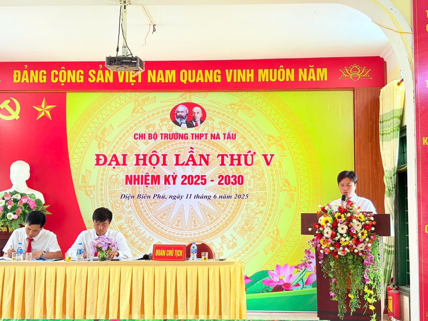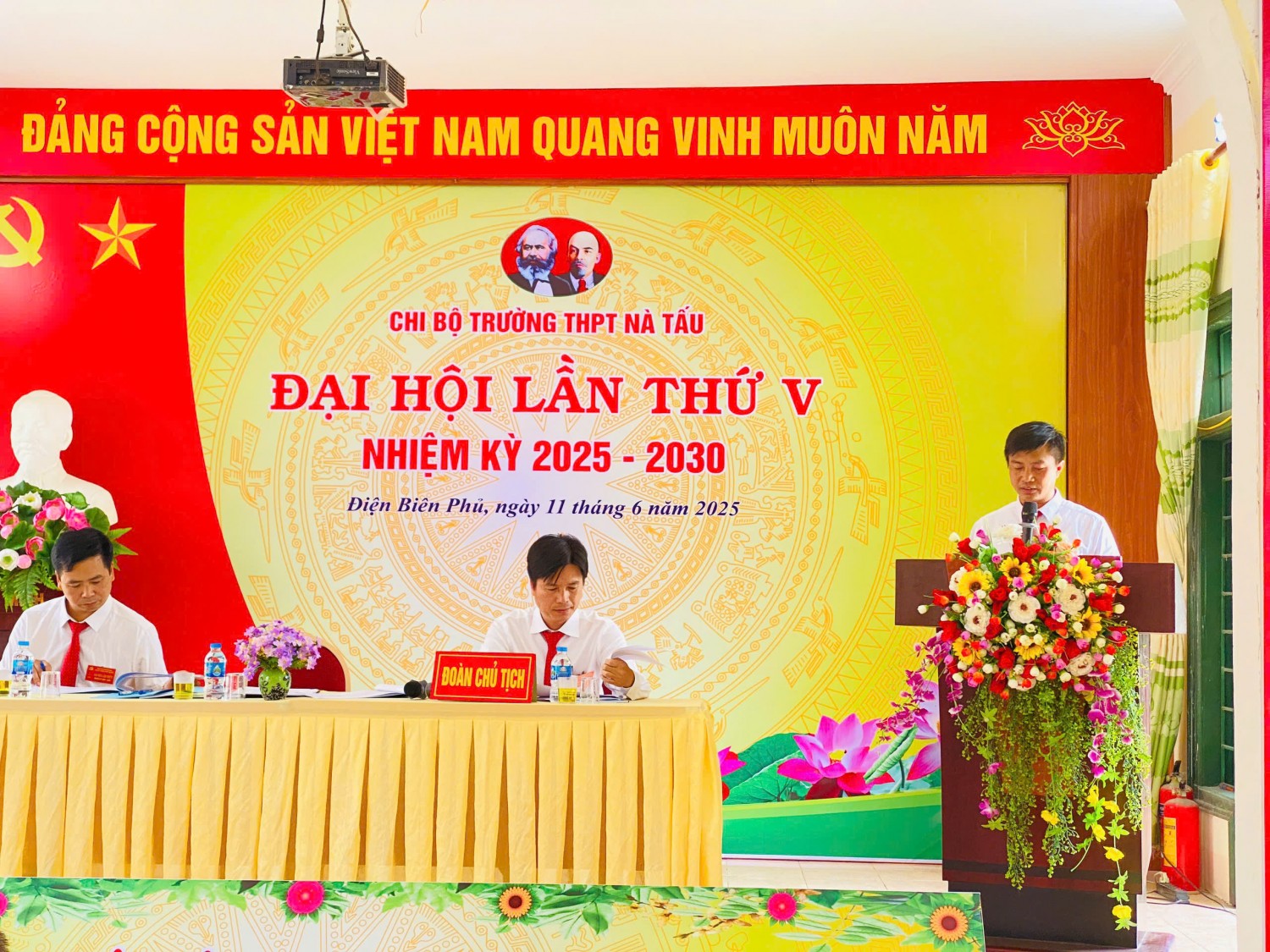 Tại Đại hội, đồng chí Phó Bí thư Chi bộ nhiệm kỳ 2020-2025 đã trình bày Báo cáo chính trị đánh giá kết quả thực hiện Nghị quyết Đại hội lần thứ IV. Báo cáo nêu rõ, trong nhiệm kỳ qua, Chi bộ Trường THPT Nà Tấu đã lãnh đạo nhà trường thực hiện hiệu quả nhiệm vụ giáo dục và đào tạo, đổi mới phương pháp giảng dạy, nâng cao chất lượng học sinh, chú trọng công tác giáo dục đạo đức, kỹ năng sống cho học sinh; đồng thời giữ vững vai trò lãnh đạo toàn diện trong các phong trào thi đua, xây dựng môi trường giáo dục an toàn, lành mạnh.