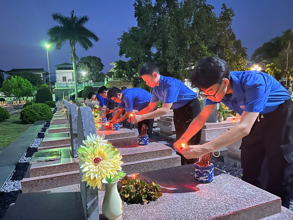Thanh niên ưu tú tham gia Lễ thắp nến và dâng hương tri ân các anh hùng liệt sỹ tại nghĩa trang Liệt sỹ Him Lam