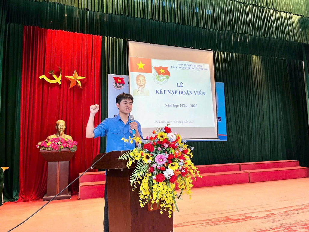 Phát biểu tại buổi lễ, đại diện Ban Chấp hành Đoàn trường THPT Lương Thế Vinh đã ghi nhận và biểu dương những cố gắng của các bạn đoàn viên mới, đồng thời nhấn mạnh vai trò tiên phong, gương mẫu của người đoàn viên trong thời kỳ mới. Tổ chức Đoàn chính là môi trường rèn luyện bản lĩnh chính trị, đạo đức cách mạng và kỹ năng sống, là nơi chắp cánh ước mơ, hoài bão cho tuổi trẻ.