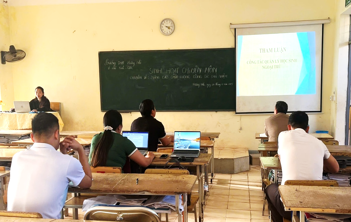 Buổi thảo luận diễn ra sôi nổi với 3 nội dung trọng tâm, bám sát đặc thù của học sinh vùng cao Mường Nhé: một là quản lý học sinh đi học chuyên cần: đây là bài toán sống còn để duy trì chất lượng giáo dục; hai là quản lý học sinh bán trú: đảm bảo môi trường sống an toàn, kỷ luật để các em yên tâm học tập xa nhà; ba là quản lý học sinh ngoại trú: phối hợp chặt chẽ với chủ nhà trọ và địa phương để tránh các tệ nạn và rủi ro ngoài nhà trường. Nội dung thảo luận tâm điểm và chiếm nhiều thời gian nhất chính là giải pháp nâng cao tỷ lệ chuyên cần. Tại một xã biên giới như Mường Nhé, việc học sinh nghỉ học đi làm nương, ở nhà lấy vợ, lấy chồng hay đơn giản là chán học vẫn luôn là nỗi trăn trở khôn nguôi của các thầy cô.