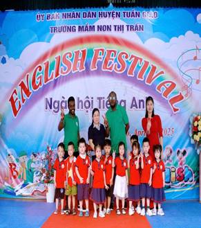 Với mục đích nhằm hình thành và phát triển năng lực giao tiếp, kỹ năng ngôn ngữ tiếng Anh cho trẻ mẫu giáo từ 3 đến 5 tuổi; góp phần nâng cao chất lượng dạy và học ngoại ngữ; tuyên truyền sâu rộng tới các bậc Cha mẹ trẻ về tầm quan trọng việc làm quen tiếng Anh cho trẻ mẫu giáo, sáng ngày 25/4/2025 Trường Mầm non Thị trấn Tuần Giáo, huyện Tuần Giáo đã phối hợp với Trung tâm Ngoại ngữ - Tin học tỉnh Điện Biên tổ chức chương trình “English Festival” ngày hội tiếng Anh cho trẻ mẫu giáo, đây là một buổi giao lưu vui vẻ, bổ ích và lý thú, qua buổi giao lưu các bé được nghe, nói, hát, múa, chơi các trò chơi bằng tiếng Anh!