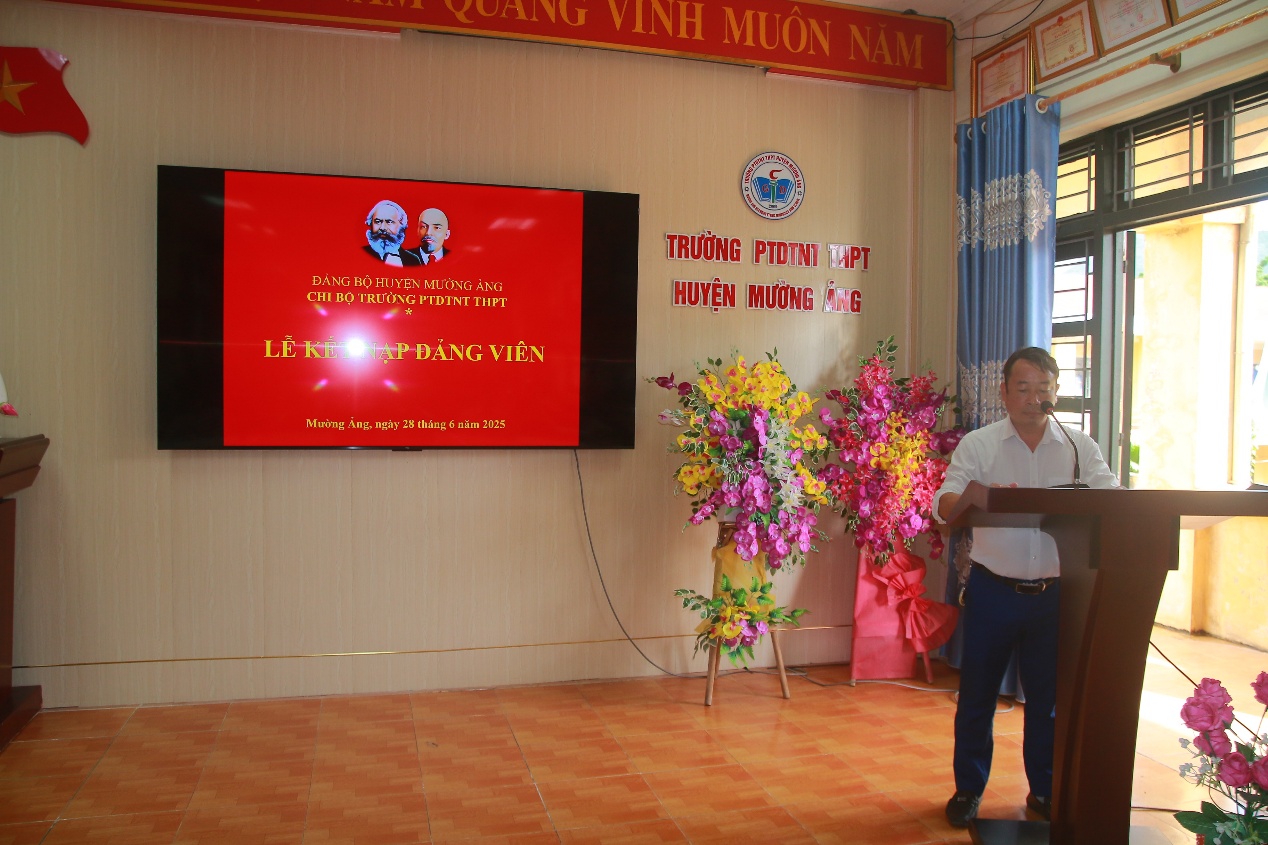 Đồng chí Cà Văn Minh – Bí thư Chi bộ, Hiệu trưởng nhà trường đọc quyết định kết nạp đảng viên mới.