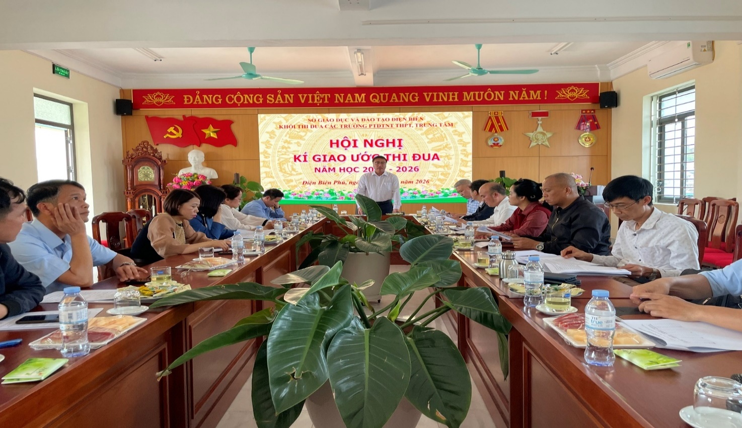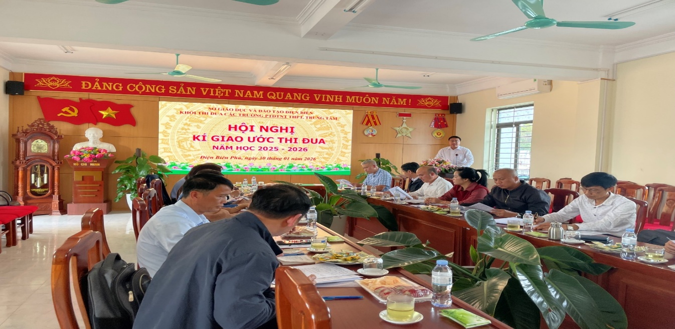 Chiều ngày 30/01/2026, tại Trường PTDTNT THPT tỉnh Điện Biên, Khối thi đua các Trường PTDTNT, Trung tâm đã tổ chức Hội nghị kí kết giao ước thi đua năm học 2025 - 2026. Hội nghị có sự tham dự của Hiệu trưởng, Giám đốc và cán bộ phụ trách công tác thi đua của các đơn vị trong Khối, gồm các trường PTDTNT THPT: tỉnh, Mường Thanh, Na Son, Mường Ảng, Mường Nhé, Nà Hỳ, Tủa Chùa, Tuần Giáo, Na Sang; Trung tâm: Hỗ trợ phát triển giáo dục hòa nhập tỉnh, GDNN - GDTX khu vực 1.