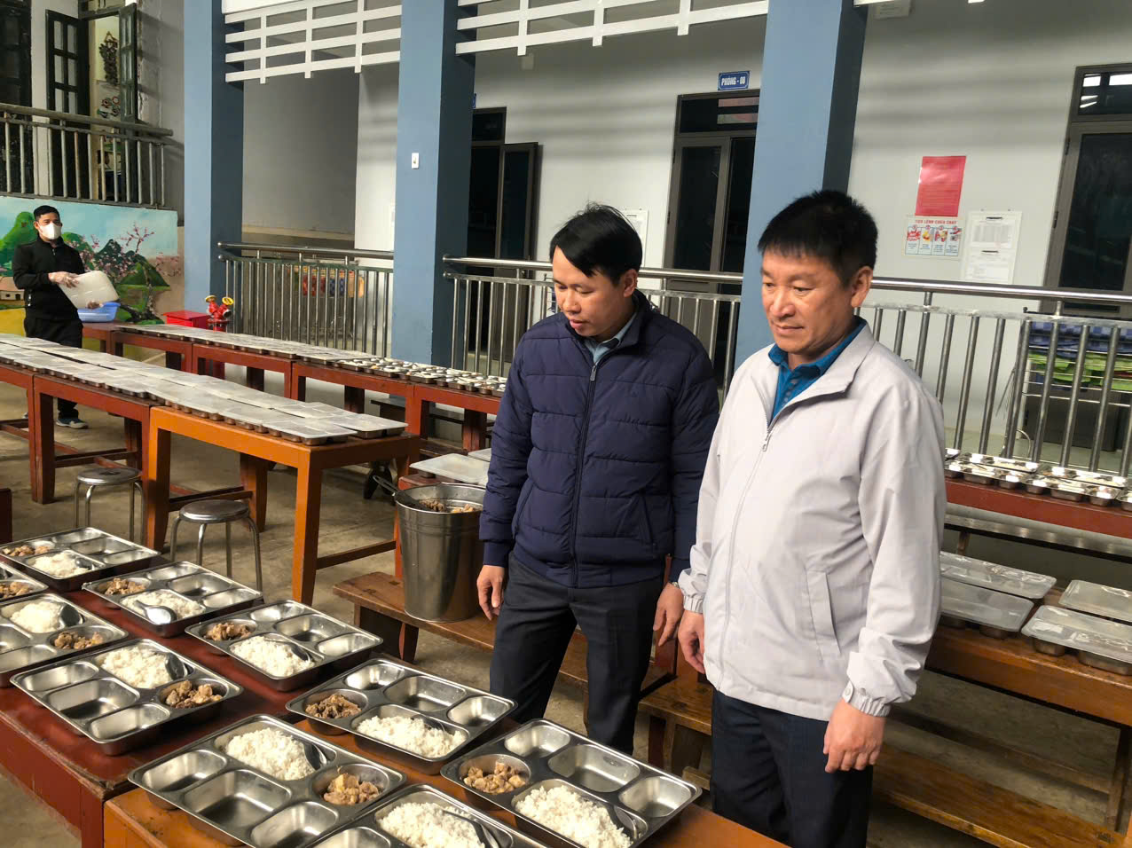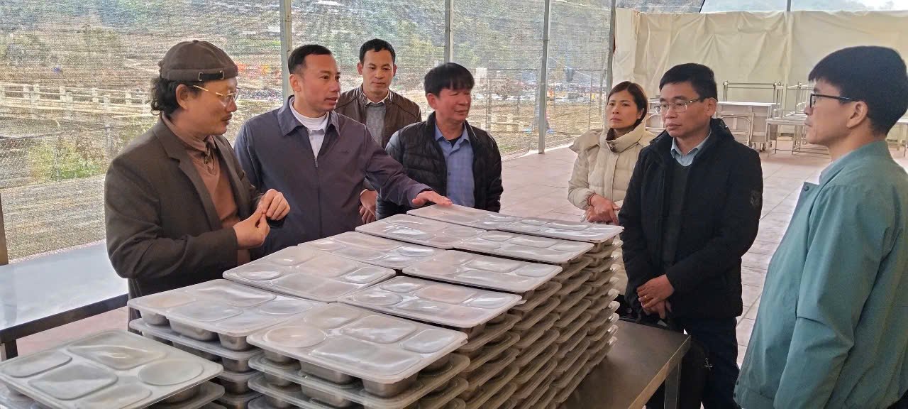 Ảnh: Lãnh đạo Sở GDĐT kiểm tra bếp ăn tập thể tại huyện Tủa Chùa