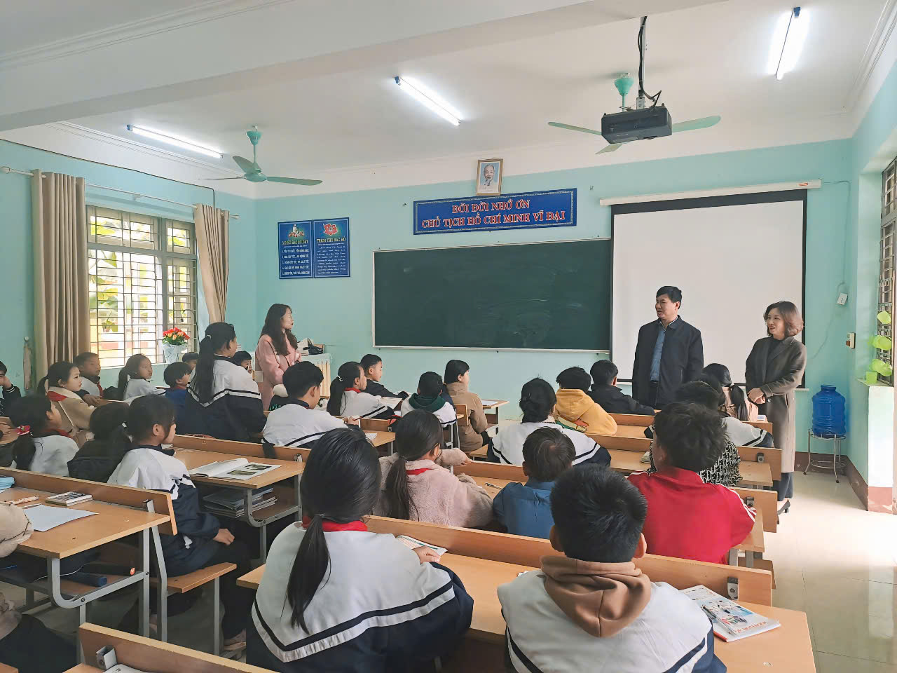 Ảnh Đoàn kiểm tra công tác dạy và học tại trường THCS Chiềng Đông (huyện Tuần Giáo)