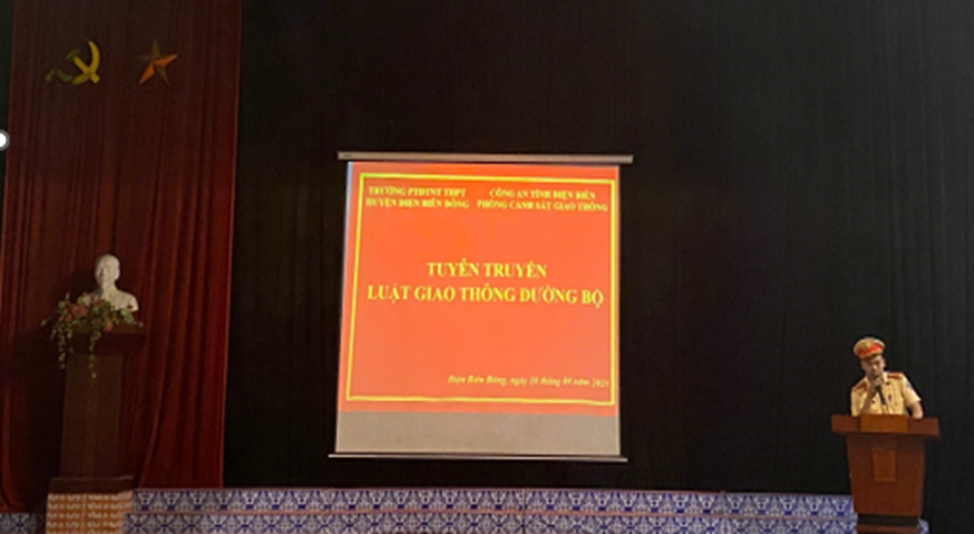 Dienbien.edu.vn-Nhằm nâng cao ý thức chấp hành pháp luật về giao thông đường bộ trong lứa tuổi học sinh, 19h30 phút tối ngày 10/4/2025, trường Phổ thông DTNT THPT huyện Điện Biên Đông phối hợp với phòng Cảnh sát giao thông - Công an tỉnh Điện Biên tổ chức buổi tuyên truyền Luật An toàn giao thông đường bộ cho toàn thể cán bộ, giáo viên và học sinh nhà trường.