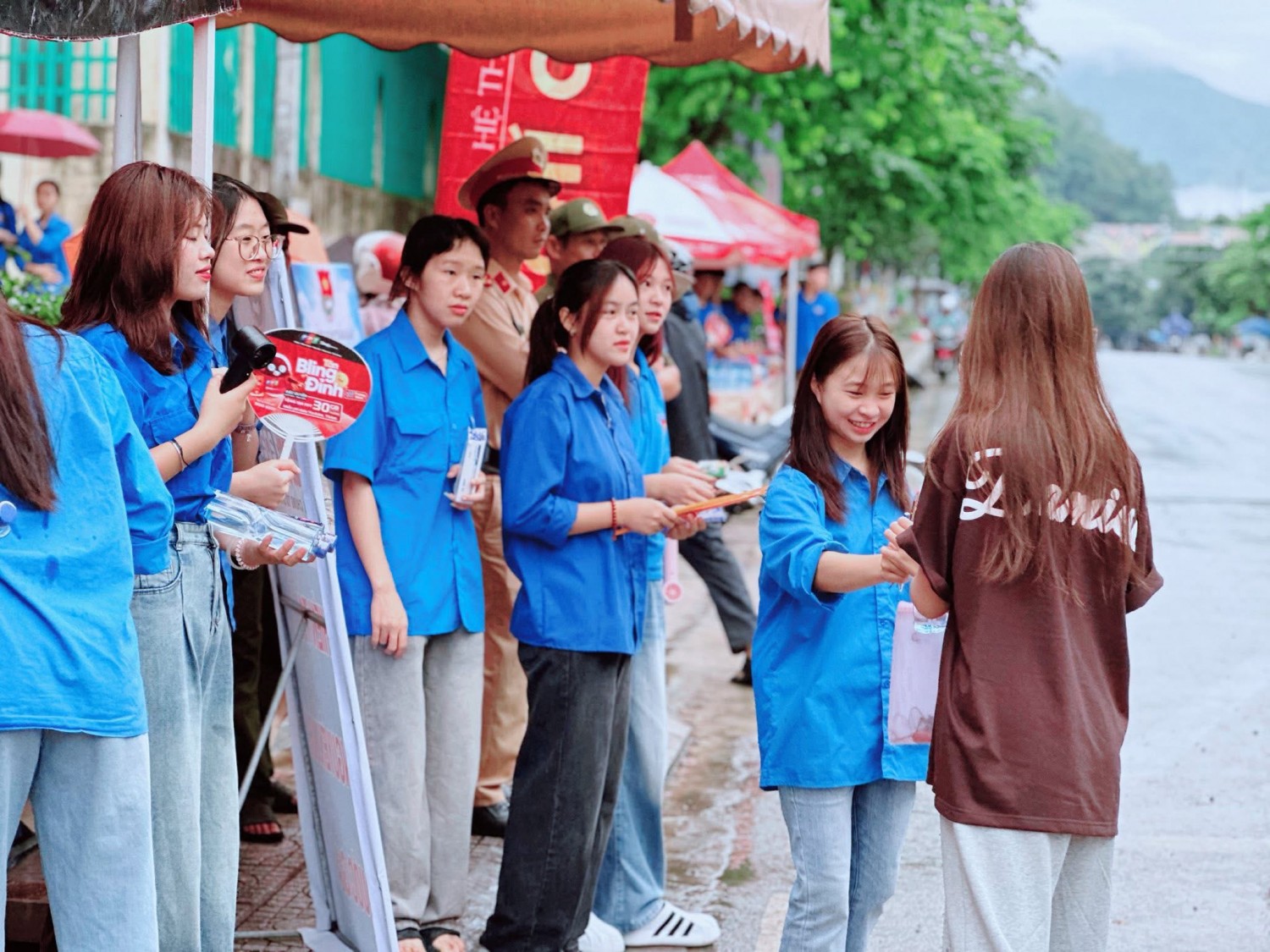 Mỗi mùa thi đến, hình ảnh các Đoàn viên thanh niên khoác lên mình màu áo xanh tình nguyện đã trở thành biểu tượng quen thuộc, gắn bó và đầy ý nghĩa đối với các thí sinh và phụ huynh. Trong năm 2025, Đoàn trường THPT Tuần Giáo đã thể hiện vai trò chủ động của mình bằng việc triển khai chương trình một cách chu đáo và bài bản, từ khâu chuẩn bị nhân sự đến việc phối hợp chặt chẽ với các lực lượng chức năng. Ngay từ đầu tháng 6, Ban Chấp hành Đoàn trường đã xây dựng kế hoạch chi tiết, gần 70 Đoàn viên khối 10 và 11 đăng ký tham gia. Các tình nguyện viên đã được tập huấn kỹ lưỡng về kỹ năng xử lý tình huống, hướng dẫn thí sinh, phối hợp giữ gìn trật tự tại điểm thi. Đồng thời, các em cũng đảm nhận nhiều phần việc thiết thực như phát nước uống, hỗ trợ thí sinh tra cứu thông tin, dẫn đường vào điểm thi, phân luồng giao thông và nhắc nhở phụ huynh giữ khoảng cách an toàn trước cổng trường.