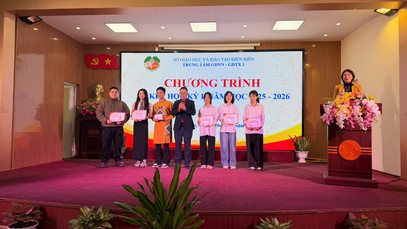 Ngày 17/01/2026, Trung tâm Giáo dục nghề nghiệp - Giáo dục thường xuyên 1 long trọng tổ chức chương trình Sơ kết học kỳ I năm học 2025 - 2026 với sự tham dự của Ban Giám đốc, toàn thể cán bộ, giáo viên, nhân viên và các em học viên các khối lớp. Buổi sơ kết diễn ra trong không khí nghiêm túc, ấm áp, thể hiện tinh thần đoàn kết, đồng thuận của một tập thể vừa trải qua sáp nhập nhưng đã nhanh chóng ổn định và đi vào hoạt động hiệu quả.