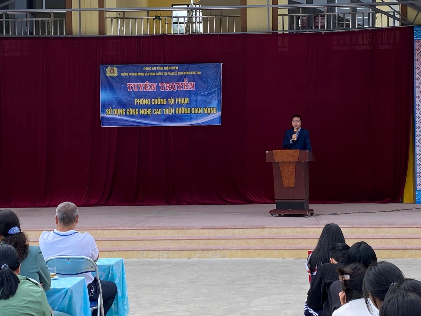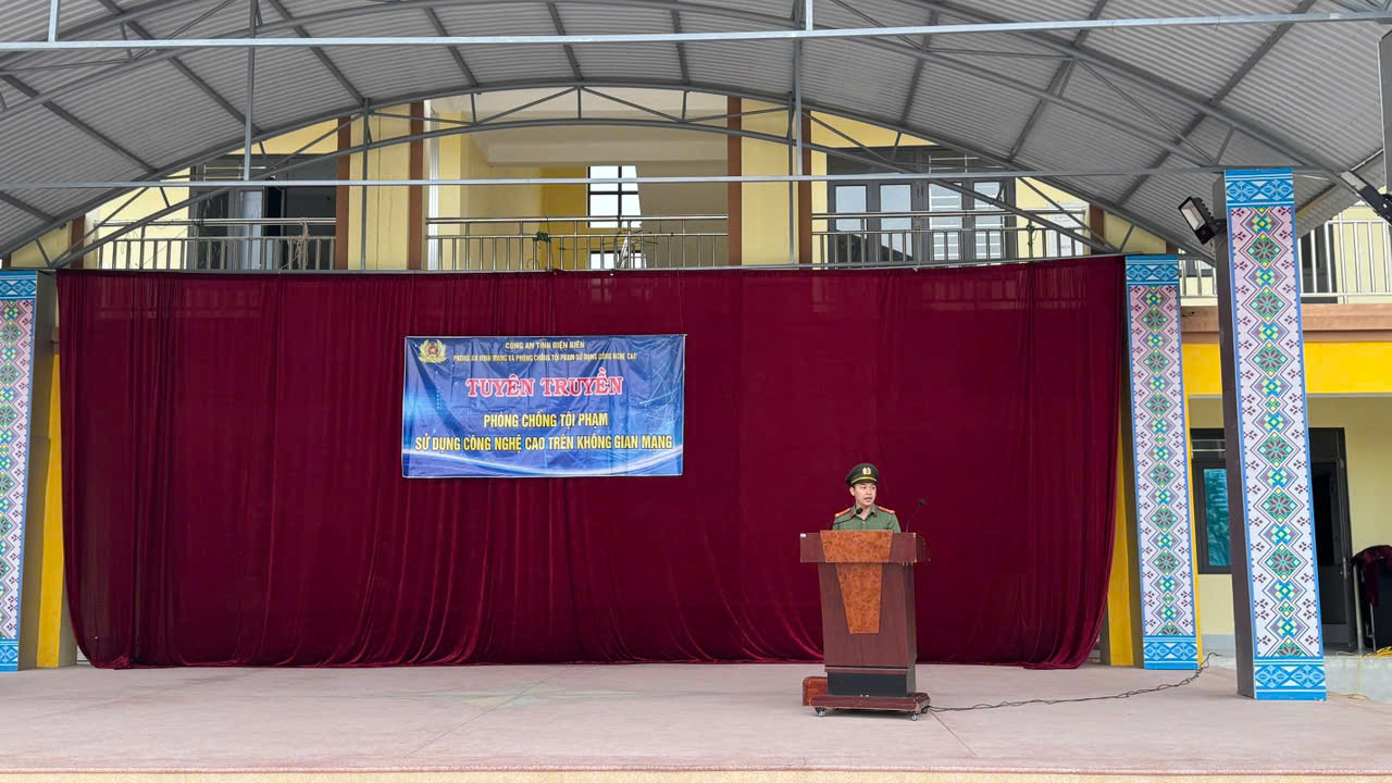 Dienbien.edu.vn - Thực hiện Công văn số 842/SGDĐT-QLCL của Sở Giáo dục và Đào tạo tỉnh Điện Biên về việc phối hợp tổ chức tuyên truyền về tội phạm lừa đảo chiếm đoạt tài sản trên không gian mạng, sáng ngày 15/4/2025, Trường Phổ thông Dân tộc nội trú (PTDTNT) tỉnh Điện Biên đã phối hợp với Phòng An ninh mạng và Phòng chống tội phạm sử dụng công nghệ cao PA05 - Công an tỉnh Điện Biên tổ chức buổi tuyên truyền cho cán bộ, giáo viên và học sinh toàn trường.