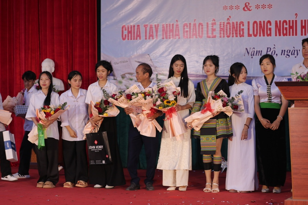 Giây phút toàn thể đại biểu, giáo viên, học sinh tặng hoa, quà và chụp ảnh lưu niệm cùng thầy Long đã khép lại buổi Lễ trong sự xúc động, đầy lưu luyến. Không ít ánh mắt học trò rưng rưng, không ít lời chúc rì rầm trong không gian chiều muộn – nơi mái trường Nậm Pồ ấm áp.