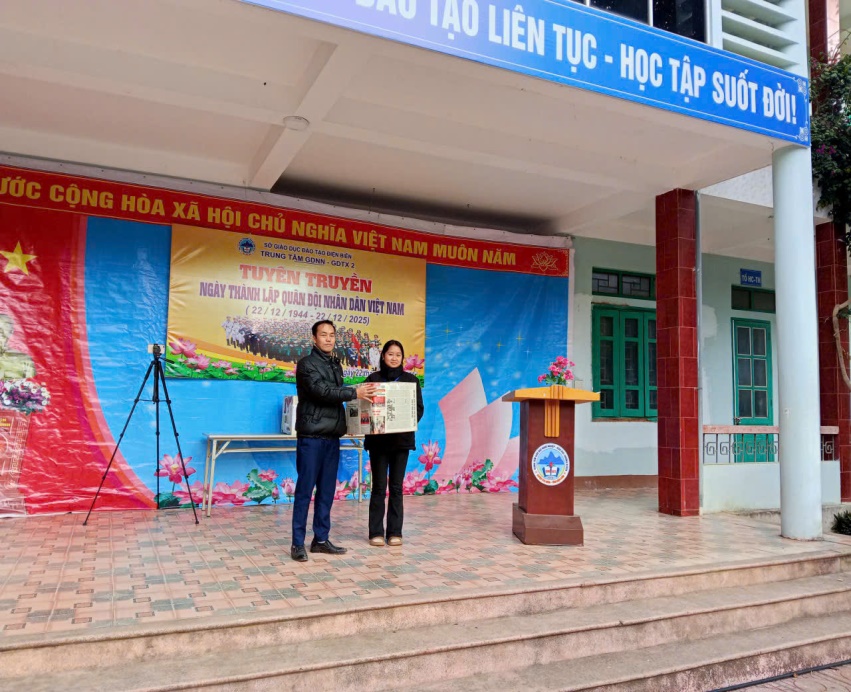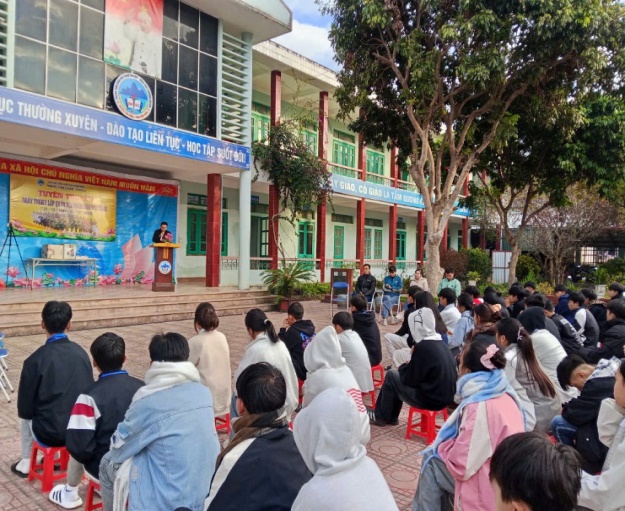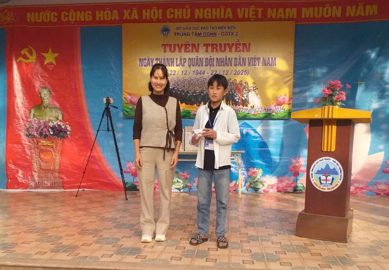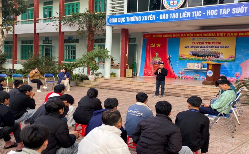 Tiếp nối chương trình, thầy giáo Đỗ Như Định - Phó Bí thư Đoàn TNCS Hồ Chí Minh đã thông tin khái quát về lịch sử ra đời, quá trình xây dựng, chiến đấu và trưởng thành của Quân đội nhân dân Việt Nam. Nội dung tuyên truyền đã làm nổi bật những mốc son chói lọi của dân tộc như: Sự ra đời của Đội Việt Nam Tuyên truyền Giải phóng quân năm 1944, thắng lợi của Cách mạng tháng Tám năm 1945, Chiến thắng Điện Biên Phủ năm 1954 và Đại thắng mùa Xuân năm 1975, đây là những dấu ấn lịch sử tiêu biểu thể hiện tinh thần yêu nước, ý chí quật cường và truyền thống Anh hùng của quân và dân Việt Nam.