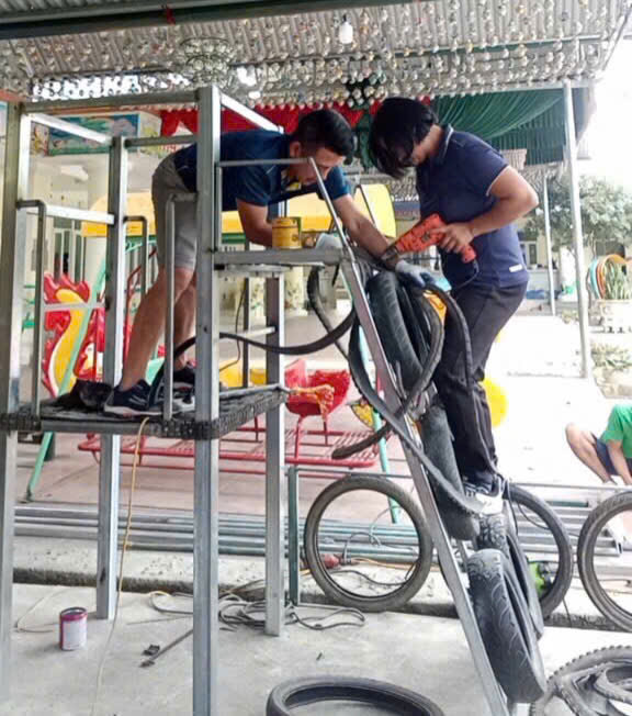 Hình ảnh làm đồ chơi tự tạo từ nguyên vật liệu sẵn có tại địa phương