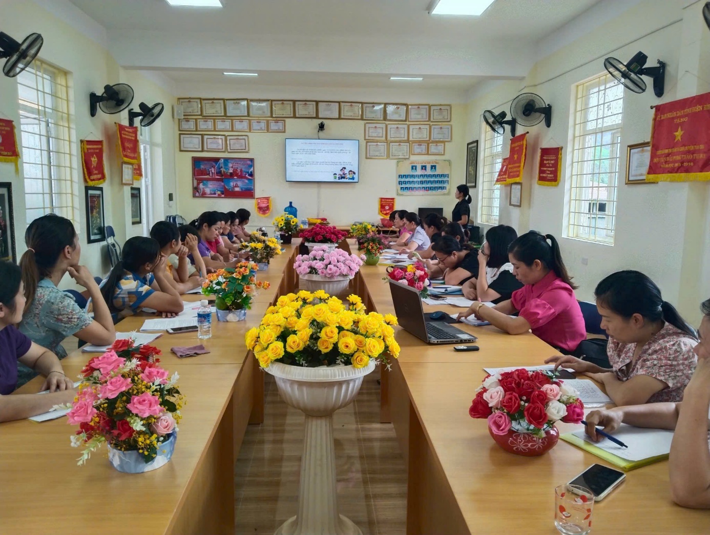 Thứ nhất: Tuyên truyền và bồi dưỡng chuyên môn cho cán bộ giáo viên. Ban giám hiệu tổ chức tuyên truyền sâu rộng về nội dung, mục tiêu và ý nghĩa của chuyên đề. Giáo viên được tham gia các buổi tập huấn, sinh hoạt chuyên môn nhằm nâng cao năng lực và kỹ năng sư phạm phù hợp với định hướng giáo dục lấy trẻ làm trung tâm.