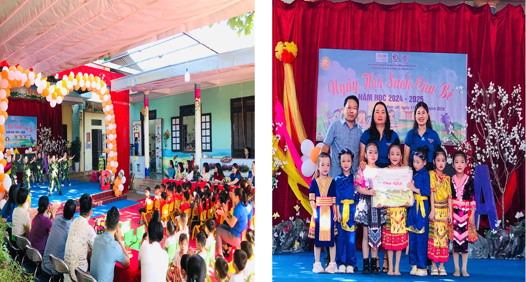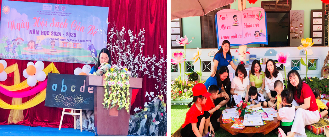 Sáng ngày 17/4/2025 tại Trường mầm non xã Pom Lót, huyện Điện Biên, tỉnh Điện Biên tổ chức “Ngày hội đọc sách” với chủ đề: "Trang sách nhỏ - Ước mơ lớn" với mong muốn khơi dậy niềm yêu thích đọc sách ở trẻ em, giúp các em tiếp cận đa dạng các thể loại sách phù hợp với lứa tuổi, đồng thời tạo ra một sân chơi bổ ích để các trẻ, giáo viên và phụ huynh cùng chia sẻ, lan tỏa văn hóa đọc trong cộng đồng.