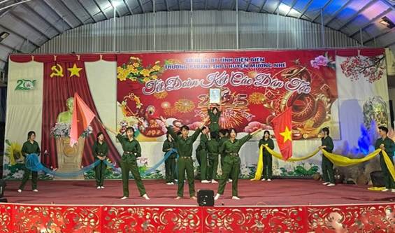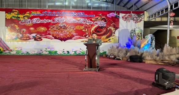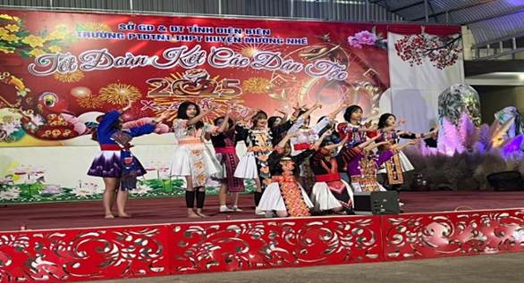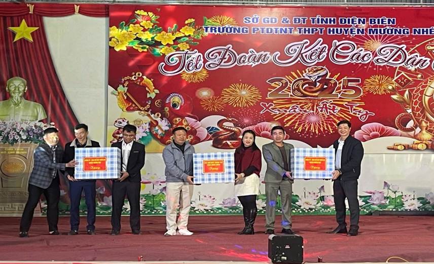 Trong không khí háo hức vui xuân đón tết, nhà trường vinh dự được đón tiếp các quý vị Đại biểu, khách quý. Đặc biệt là sự hiện diện của Đồng chí Thượng tá Nguyễn Đức Long – Phó chính ủy Bộ Chỉ huy Quân sự tỉnh Điện Biên, đồng chí Giàng A Dế - Phó bí thư thường trực huyện ủy, đồng chí Lò Văn Chiên - chủ tịch HĐND huyện Mường Nhé, cùng các đồng chí lãnh đạo đại diện các cơ quan ban ngành đóng chân trên địa bàn huyện Mường Nhé đã đến thăm và giao lưu với thầy và trò trong đêm hội “Tết đoàn kết các dân tộc”.