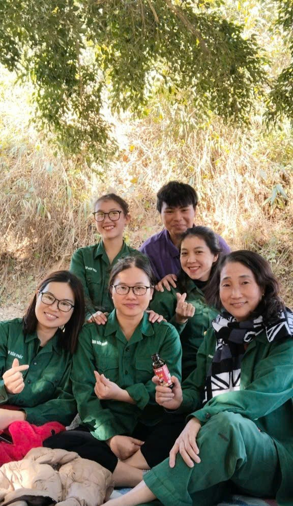 Cô Huệ bên đồng nghiệp và các em học sinh trong một hoạt động trải nghiệm của nhà trường