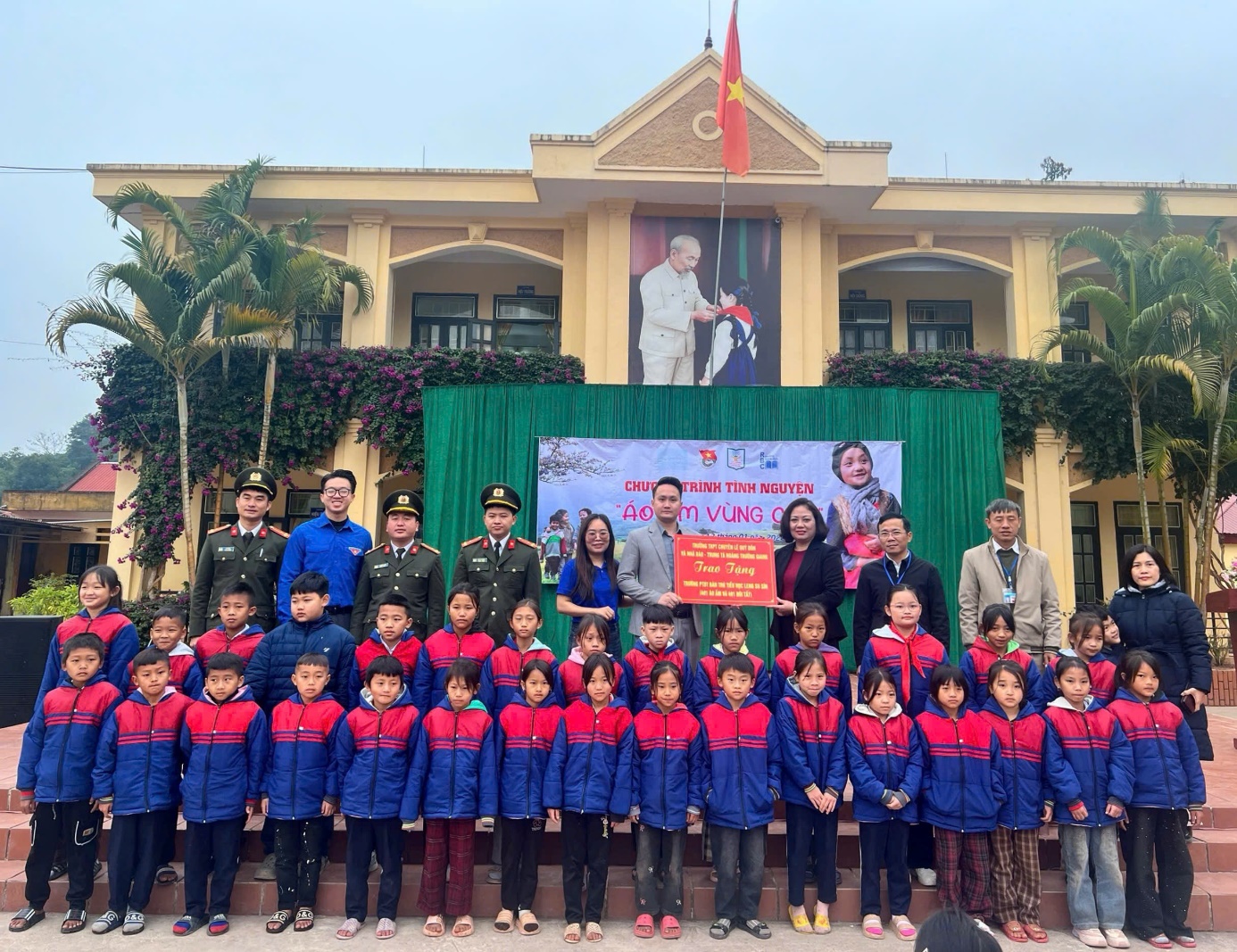 Trong hành trình đến Đồn Biên phòng A Pa Chải, đoàn đã trao tặng các phần quà Tết trong khuôn khổ chương trình “Xuân biên cương” tới cán bộ, chiến sĩ đang ngày đêm làm nhiệm vụ bảo vệ chủ quyền, an ninh biên giới quốc gia. Đặc biệt, việc tham dự Lễ Thượng cờ tại Cột cờ A Pa Chải – điểm cực Tây của Tổ quốc – đã để lại nhiều ấn tượng sâu sắc đối với thầy và trò nhà trường. Trong không gian trang nghiêm nơi biên cương, ý thức về chủ quyền quốc gia, niềm tự hào dân tộc và trách nhiệm của thế hệ trẻ được khơi dậy một cách rõ nét.