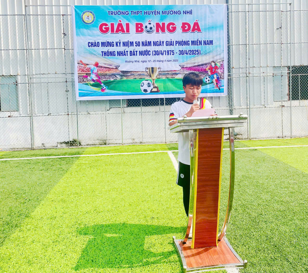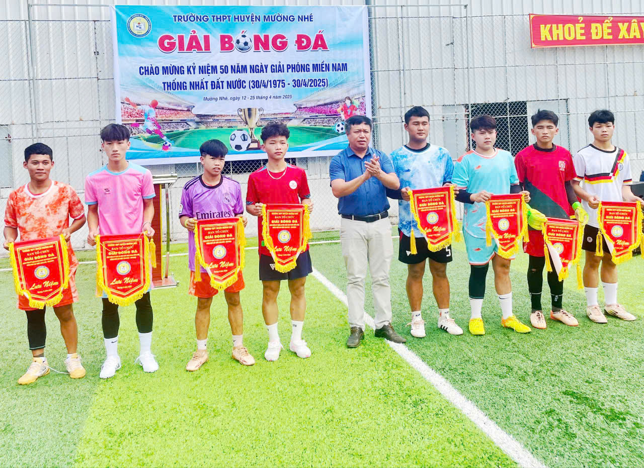 Giải bóng đá học sinh chào mừng kỷ niệm 50 năm ngày Giải phóng miền Nam, thống nhất đất nước (30/4/1975 - 30/4/2025) của trường THPT huyện Mường Nhé là một hoạt động thường niên, nhằm tạo sân chơi lành mạnh, bổ ích cho học sinh sau những giờ học căng thẳng, nâng cao tinh thần đoàn kết, giao lưu học hỏi giữa các lớp, các khối, rèn luyện sức khoẻ, ý thức kỷ luật và tinh thần thể thao cao thượng cho học sinh. Đồng thời, giải đấu thể hiện sự quan tâm của nhà trường đối với việc phát triển toàn diện về thể chất, tài năng, trí tuệ, bồi dưỡng năng khiếu cho các em học sinh trong nhà trường./.