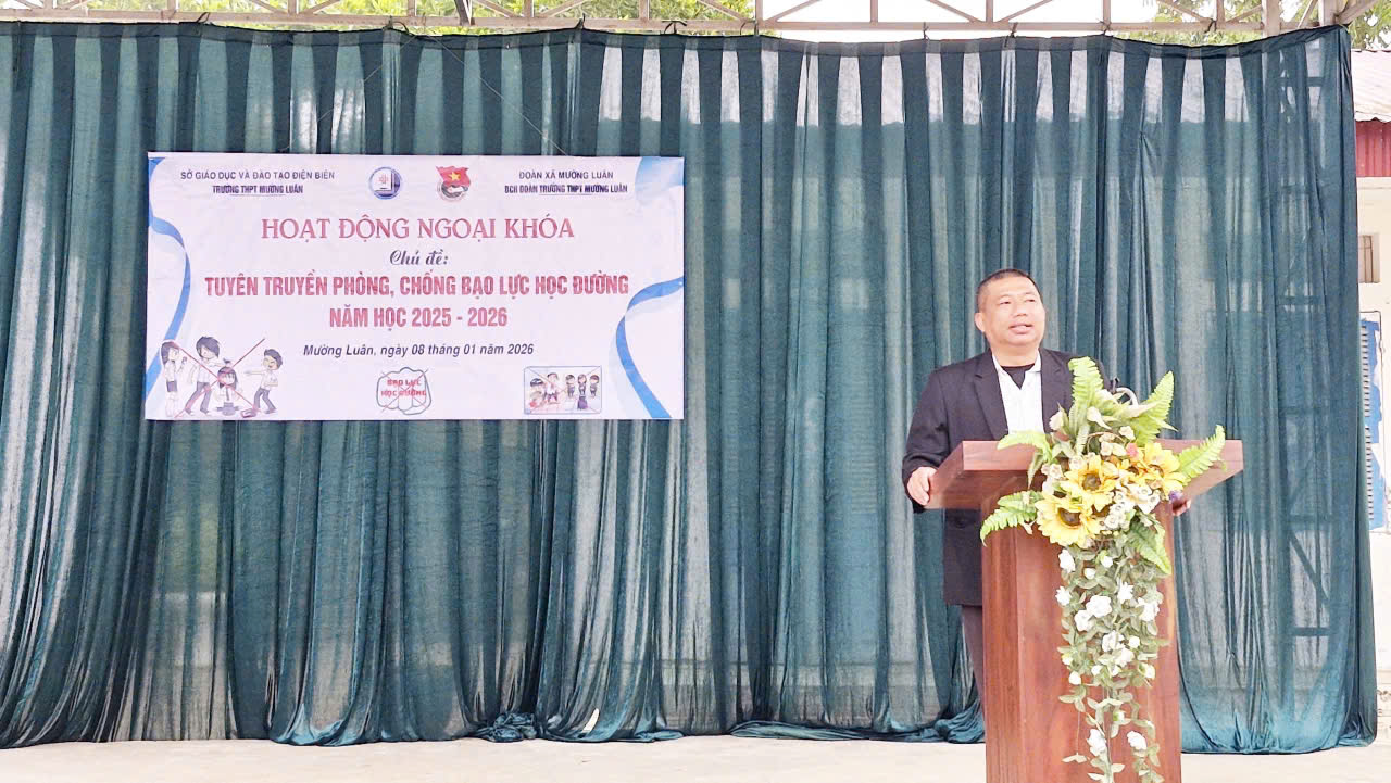 Sáng ngày 08/01/2026, trường THPT Mường Luân đã tổ chức buổi ngoại khóa với nội dung: "Nói không với bạo lực học đường và xây dựng tình bạn đẹp trong trường học” nhằm tuyên truyền, định hướng cho học sinh những giá trị, đạo đức tốt đẹp, nêu tấm gương người tốt, việc tốt để các bạn noi theo, đẩy lùi bạo lực học đường. Đây là giải pháp thiết thực, hiệu quả chung tay cùng ngành giáo dục và toàn xã hội xây dựng văn hóa học đường và giải quyết vấn nạn bạo lực học đường trong trường học hiện nay.