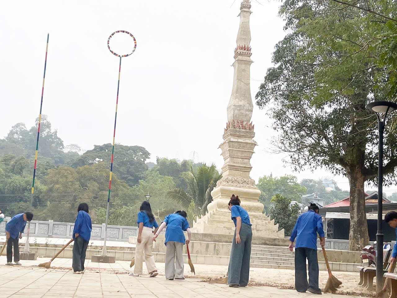 Đội ngũ thanh niên tình nguyện chung tay tổng vệ sinh khu di tích Tháp cổ Mường Luân thuộc di sản văn hoá cấp Quốc gia. Rác thải tại các rãnh thoát nước, mang lại cảnh quan thông thoáng, sạch đẹp.