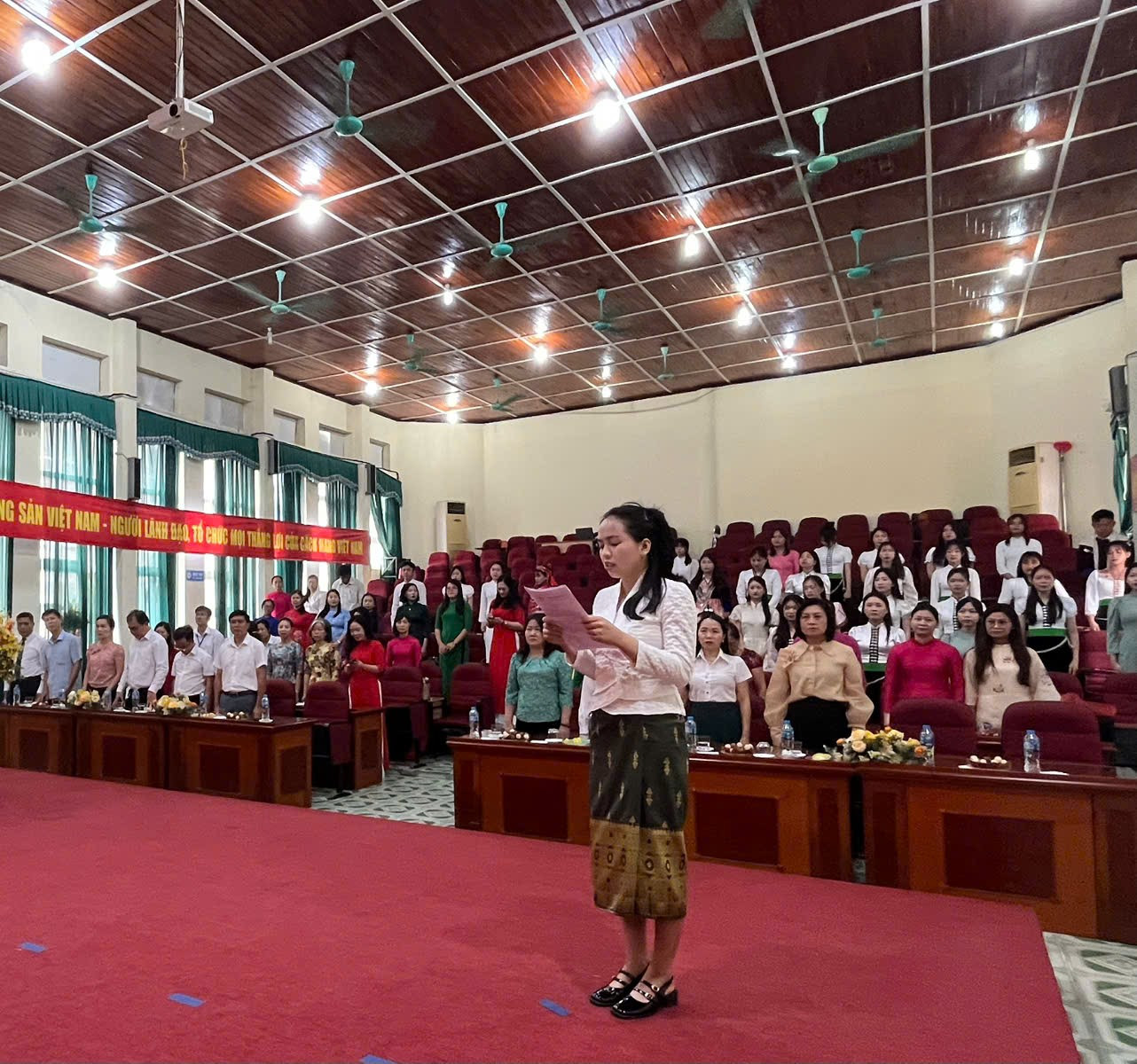 Lễ kết nạp đảng viên mới cho sinh viên năm cuối trường Cao đẳng Sư phạm Điện Biên