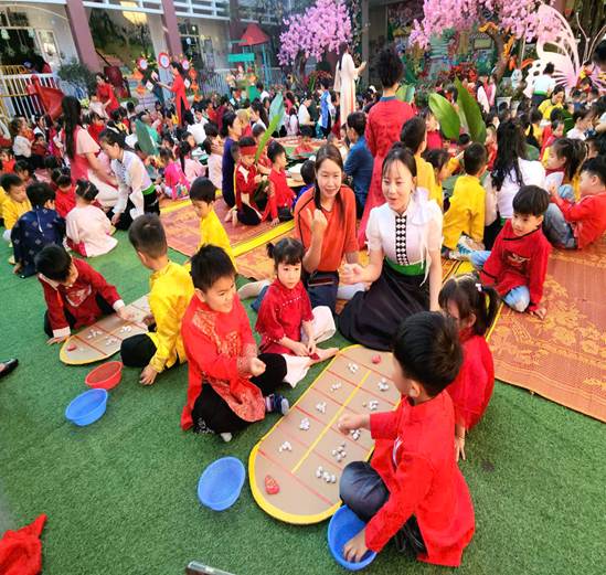 Thông qua các trò chơi dân gian như Rồng rắn lên mây, Kéo co và Đi cà kheo, các con đã được làm quen, trải nghiệm và thêm yêu những nét đẹp văn hóa truyền thống của dân tộc Việt Nam.