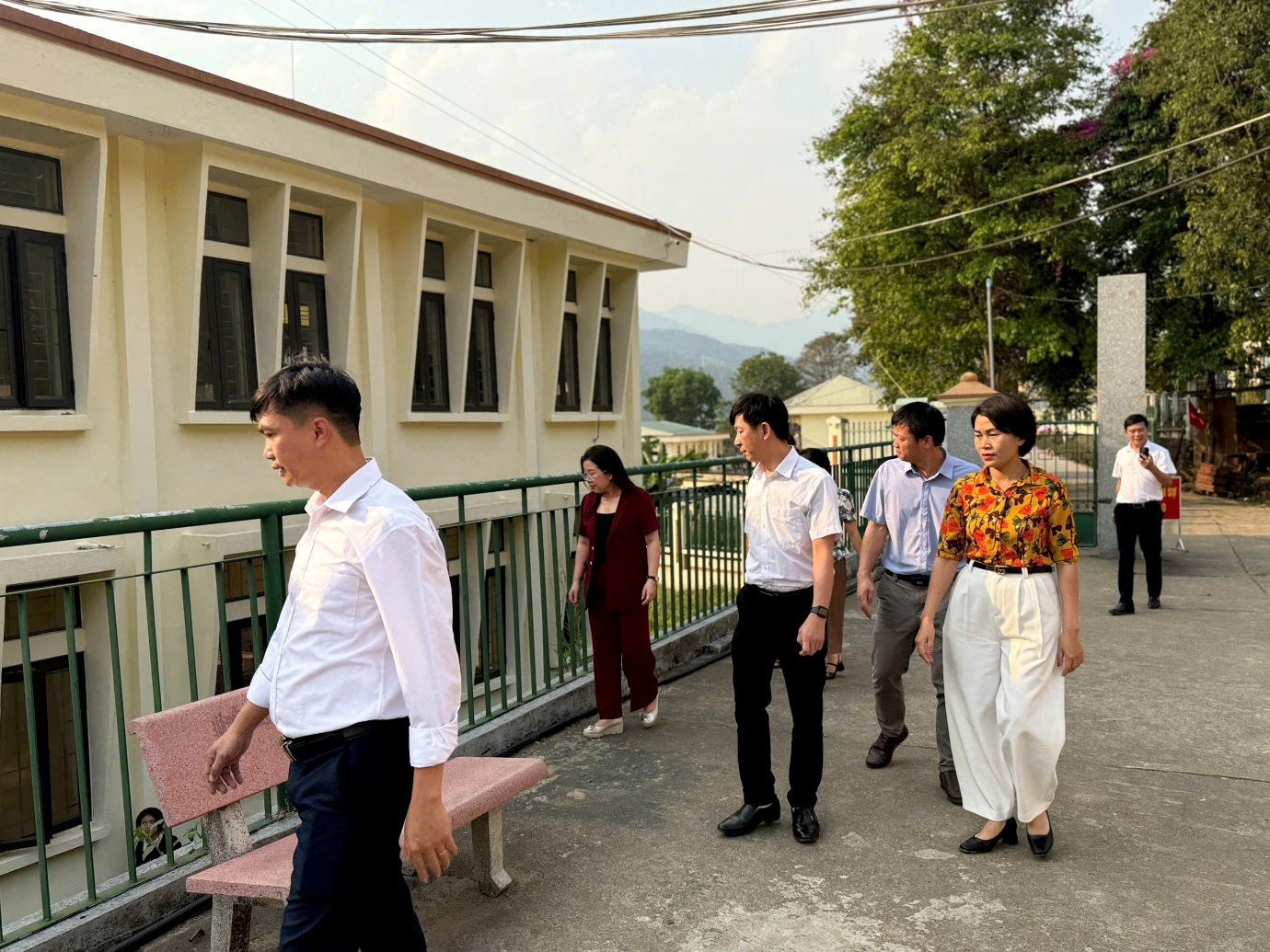 Đồng chí Hoàng Tuyết Ban - Ủy viên Ban Chấp hành Đảng bộ tỉnh, Giám đốc Sở Giáo dục và Đào tạo tỉnh Điện Biên cùng đoàn công tác đã trực tiếp tham quan thực tế khu nội trú của nhà trường PTDTNT THPT Na Sang.