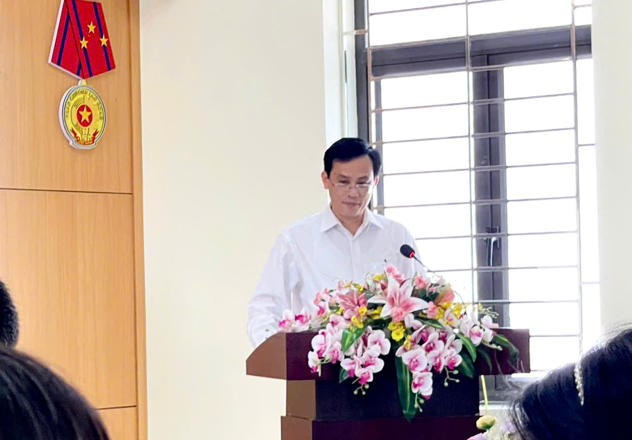 Nhà giáo Vũ Trung Hoàn - Bí thư Đảng bộ, Hiệu trưởng nhà trường thông qua báo cáo tổng kết lớp học tiếng Nga