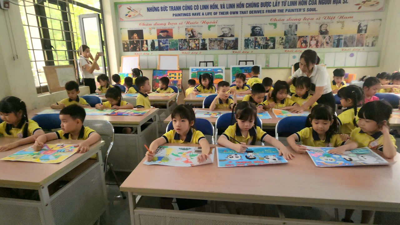 Khi được ngồi vào bàn học các con còn được thực hành cách đọc chữ, cách cầm bút, cách viết và ngồi học, cùng tham gia những trải nghiệm mới lạ khiến cho các con vô cùng thích thú và chú ý lắng nghe.