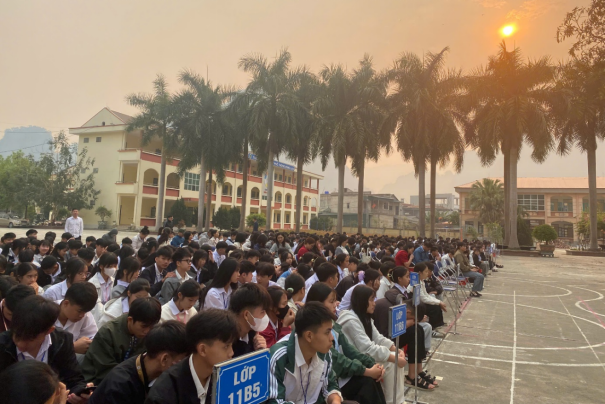 Học sinh trường THPT Búng Lao chăm chú lắng nghe tuyên truyền