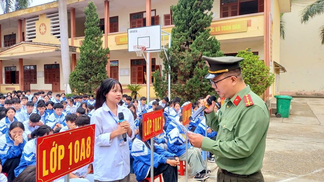Tham dự chương trình có các đại biểu đến từ Phòng PA05 Công an tỉnh, Công an xã Thanh Chăn, Ban đại diện cha mẹ học sinh cùng toàn thể cán bộ, giáo viên và gần 1.000 học sinh nhà trường.