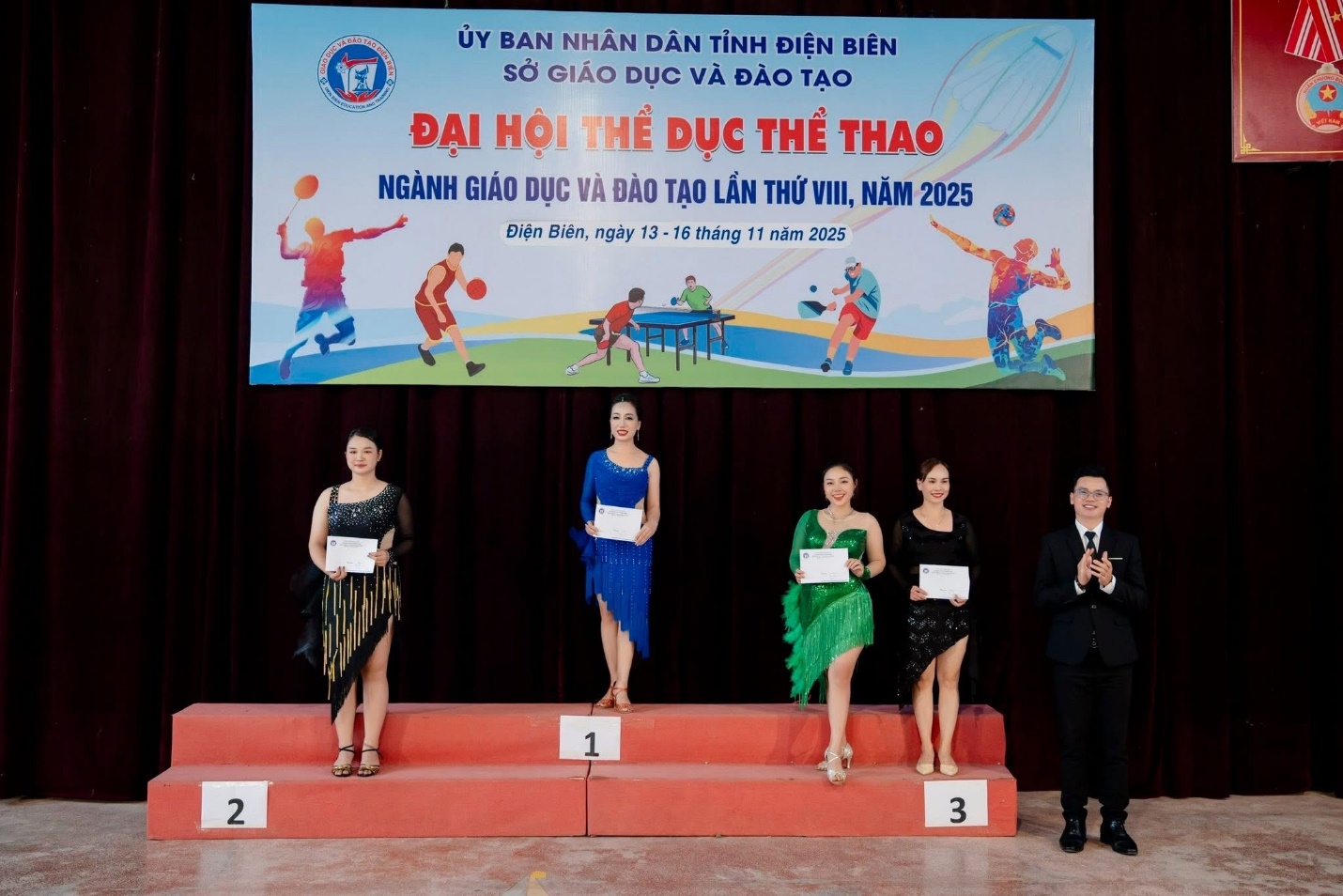 Huy chương vàng cá nhân bộ môn khiêu vũ thể thao tại Đại hội TDTT ngành giáo dục và đào tạo.