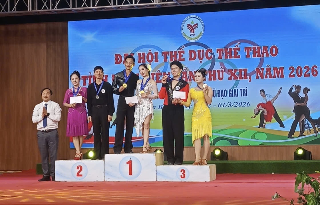 Huy chương vàng đôi nam nữ bộ môn khiêu vũ thể thao tại Đại hội thể dục thể thao Tỉnh Điện Biên.