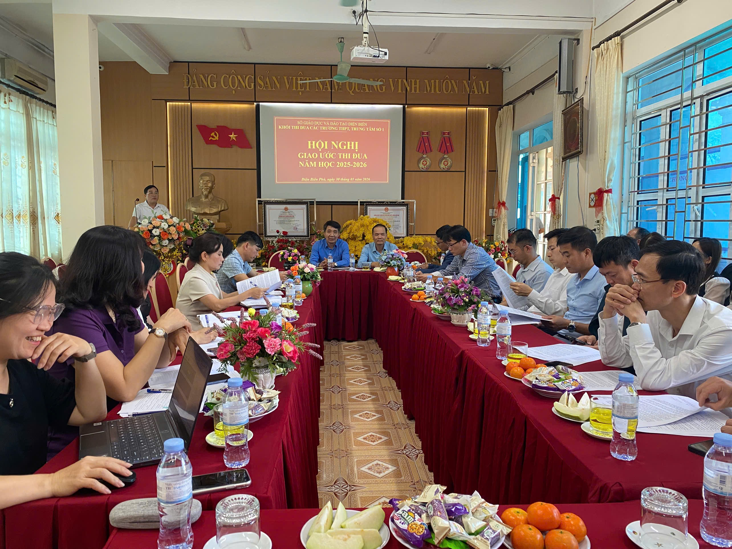Nhằm đẩy mạnh phong trào thi đua yêu nước, tạo động lực động viên, lôi cuốn, khuyến khích cá nhân, tập thể phát huy truyền thống yêu nước, hăng hái thi đua, năng động, sáng tạo, lập thành tích thiết thực chào mừng các ngày lễ lớn trong năm học, chào mừng thành công Đại hội đại biểu toàn quốc lần thứ XIV của Đảng, tiến tới bầu cử đại biểu Quốc hội Khóa XVI và đại biểu Hội đồng nhân dân các cấp nhiệm kỳ 2026-2031. Tiếp tục thực hiện nhiệm vụ năm học và cụ thể hóa công tác thi đua của Sở GD&ĐT Điện Biên, ngày 30/01/2026, Trường THPT Thanh Chăn đã chủ trì Hội nghị triển khai Giao ước thi đua năm học 2025 -2026 đối với 13 đơn vị thành viên Khối thi đua số 1.