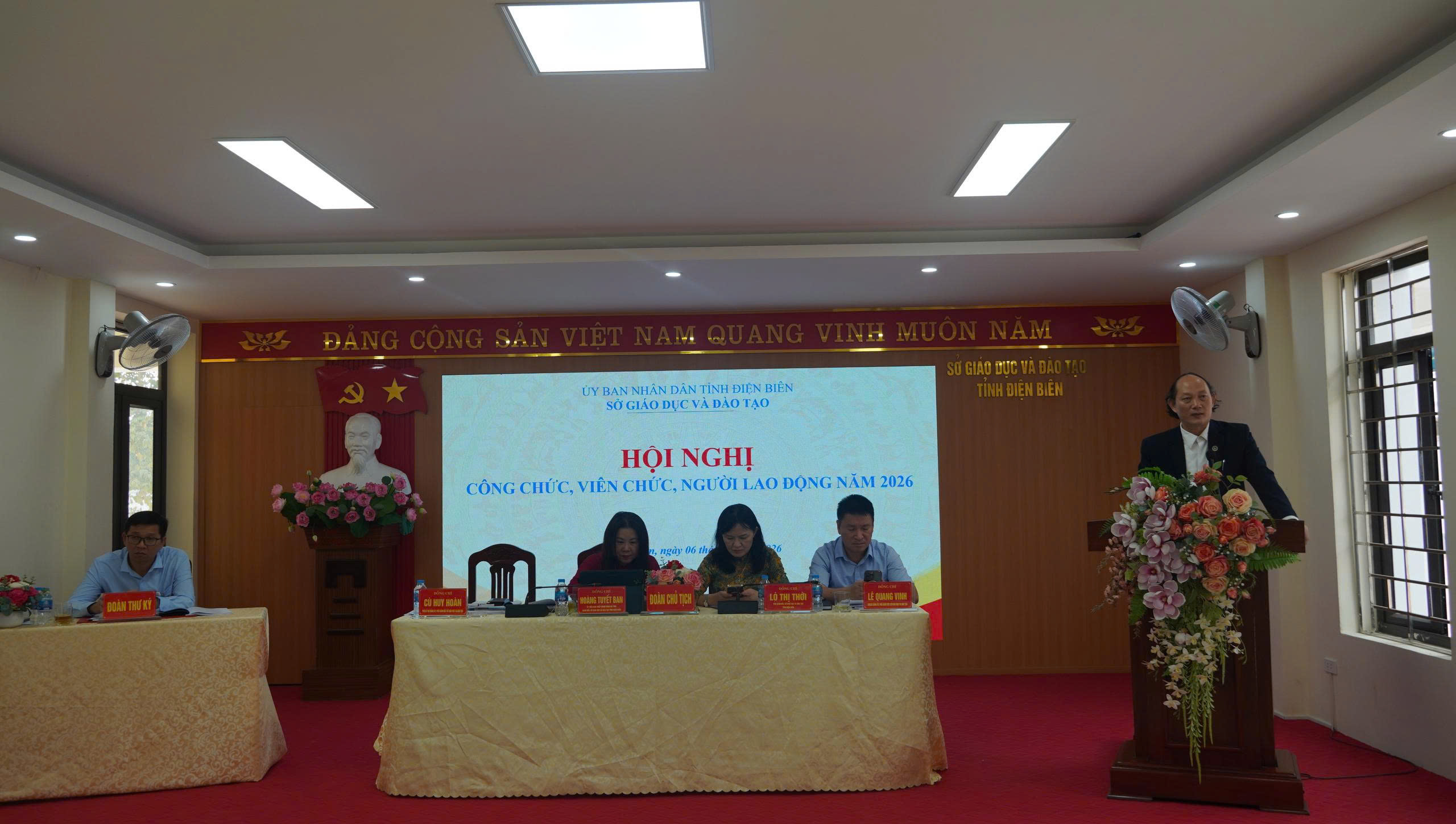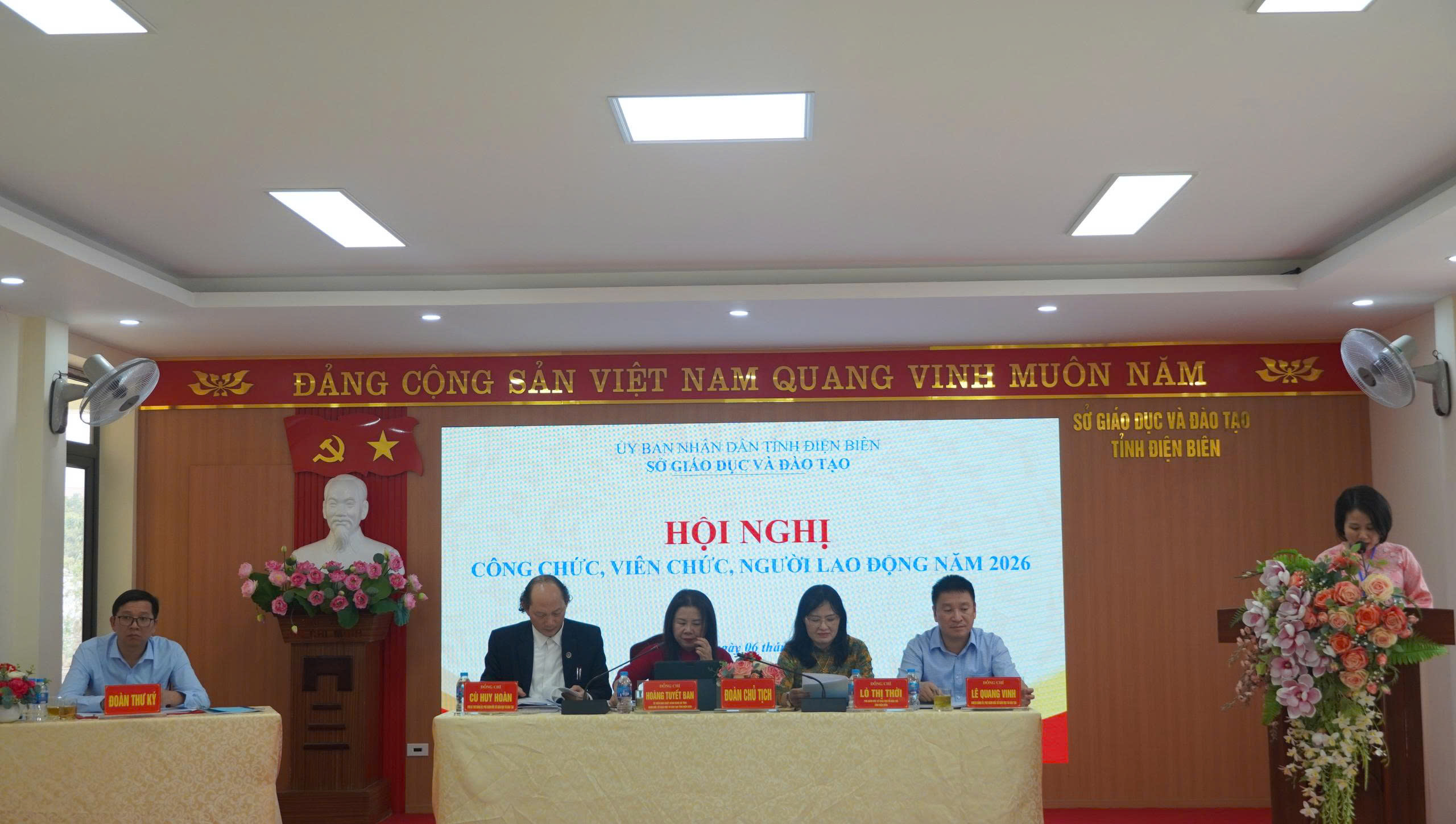 Hội nghị công chức, viên chức, người lao động năm 2026 của Sở GDĐT tỉnh Điện Biên đã diễn ra trong không khí dân chủ, đoàn kết, thống nhất cao, thể hiện quyết tâm của tập thể công chức, viên chức, người lao động cơ quan Sở trong việc chung sức, đồng lòng thực hiện thắng lợi các mục tiêu, nhiệm vụ của ngành Giáo dục và Đào tạo tỉnh Điện Biên trong năm 2026.