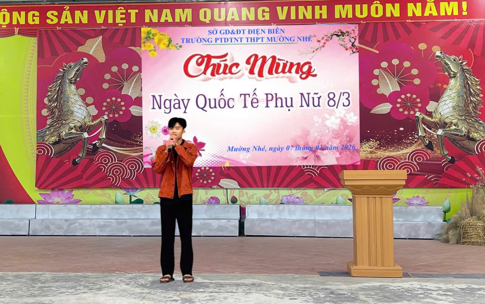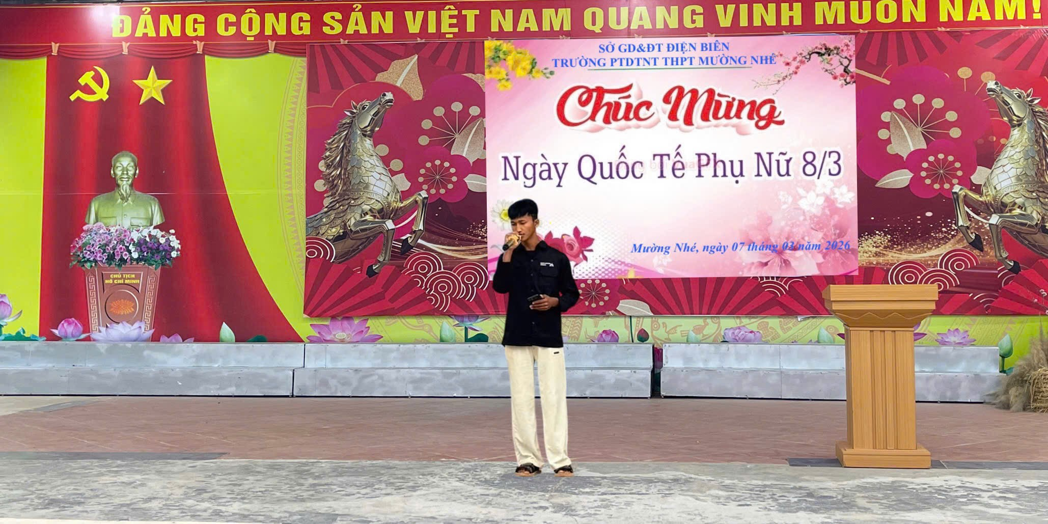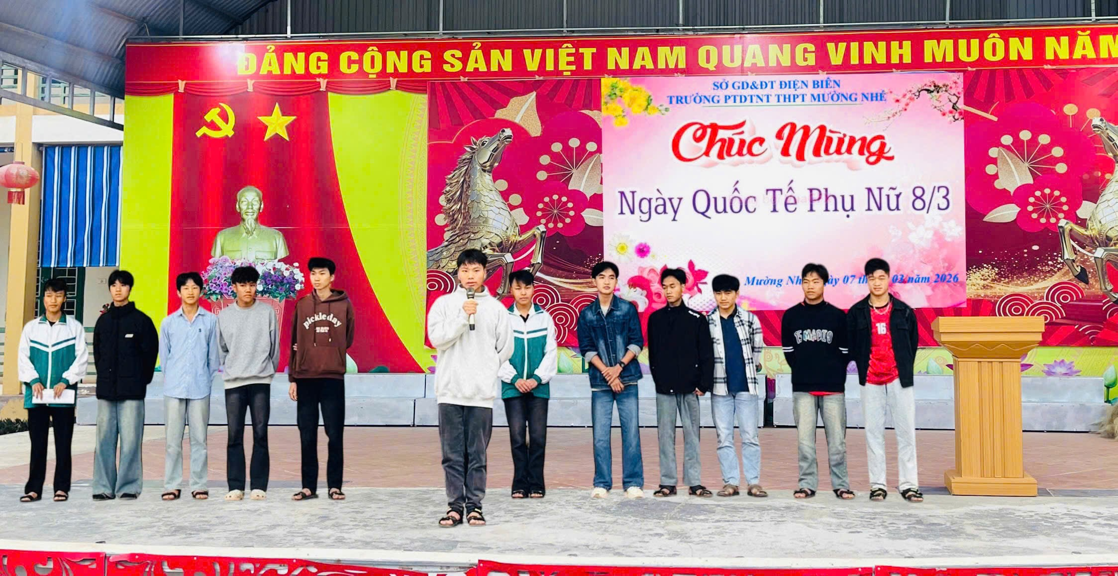 Sáng ngày 07/3/2026, Trường PTDTNT THPT Mường Nhé tổ chức chương trình chào mừng kỷ niệm 116 năm Ngày Quốc tế Phụ nữ (8/3/1910 – 8/3/2026) trong không khí vui tươi, ấm áp và đầy ý nghĩa. Hoạt động không chỉ là dịp tôn vinh những đóng góp to lớn của phụ nữ mà còn góp phần giáo dục học sinh về truyền thống tốt đẹp và những phẩm chất cao đẹp của phụ nữ Việt Nam.