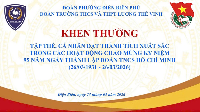Trong không khí thiêng liêng, tự hào của tuổi trẻ cả nước hướng tới kỷ niệm 95 năm Ngày thành lập Đoàn TNCS Hồ Chí Minh (26/3/1931 - 26/3/2026), Đoàn trường THCS và THPT Lương Thế Vinh đã tổ chức chuỗi hoạt động thiết thực, phong phú, tạo nên một mùa tháng Ba rực rỡ, lan tỏa mạnh mẽ tinh thần nhiệt huyết, sáng tạo và khát vọng cống hiến của đoàn viên, thanh niên.
